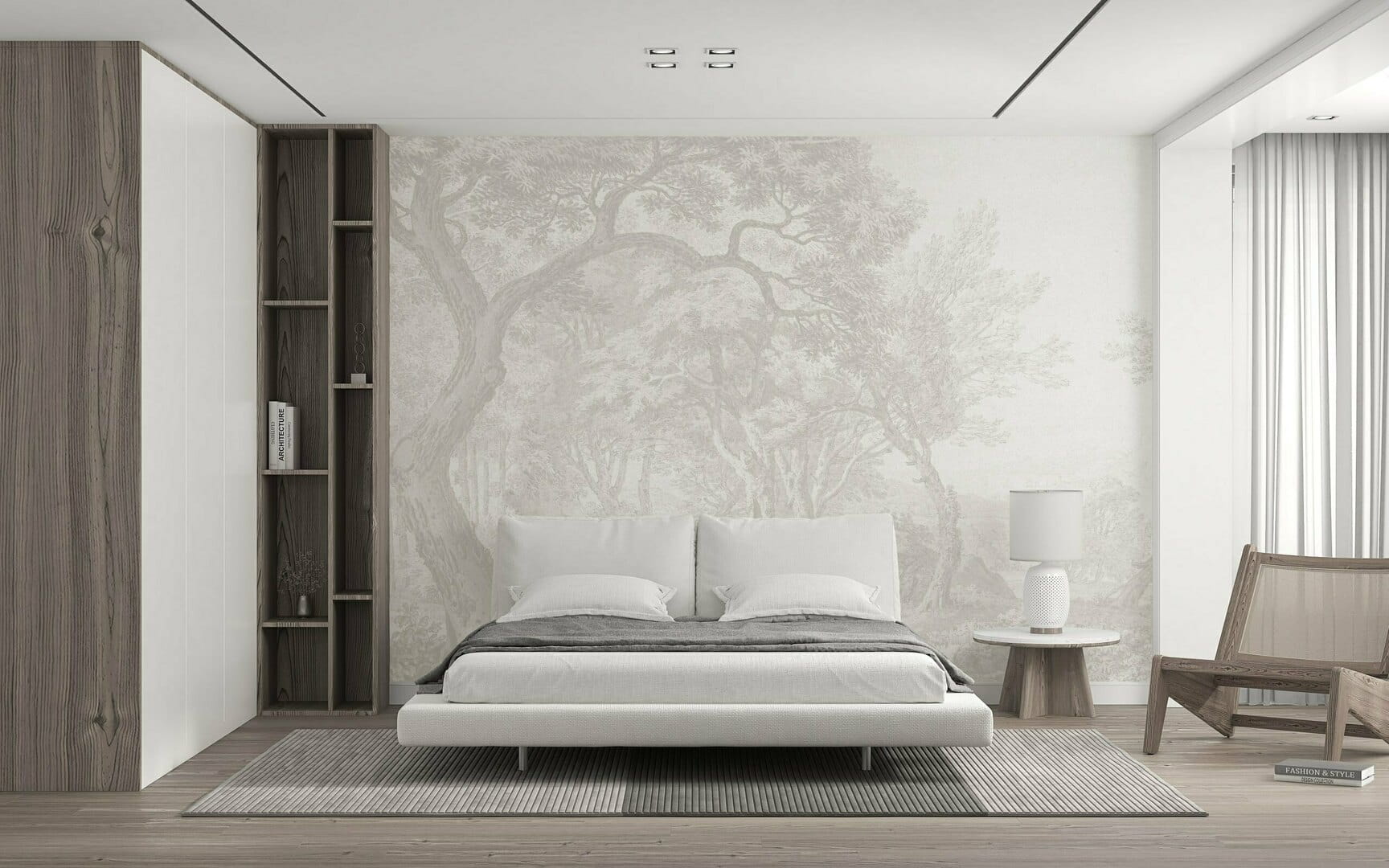 Mural Dekorami Melange 3 charakteryzuje się spokojnym i harmonijnym wzorem, który przedstawia naszkicowany, leśny krajobraz. Jest to idealny element dekoracyjny dla wnętrz, które mają być miejscem odpoczynku i relaksu. Mural dobrze komponuje się z minimalistycznymi meblami i naturalnymi materiałami, takimi jak drewno, kamień, len czy wełna. Drewniane regały, jasne sofy oraz dodatki w neutralnych kolorach stworzą z nim harmonijną aranżację. Ceramiczne naczynia czy wiklinowe kosze podkreślą naturalny charakter wnętrza. Mural Dekorami Melange 3 pasuje do miejsc urządzonych w stylu skandynawskim czy rustykalny, ale równie dobrze sprawdzi się w nowoczesnych przestrzeniach, którym doda nieco ciepła i przytulności.
