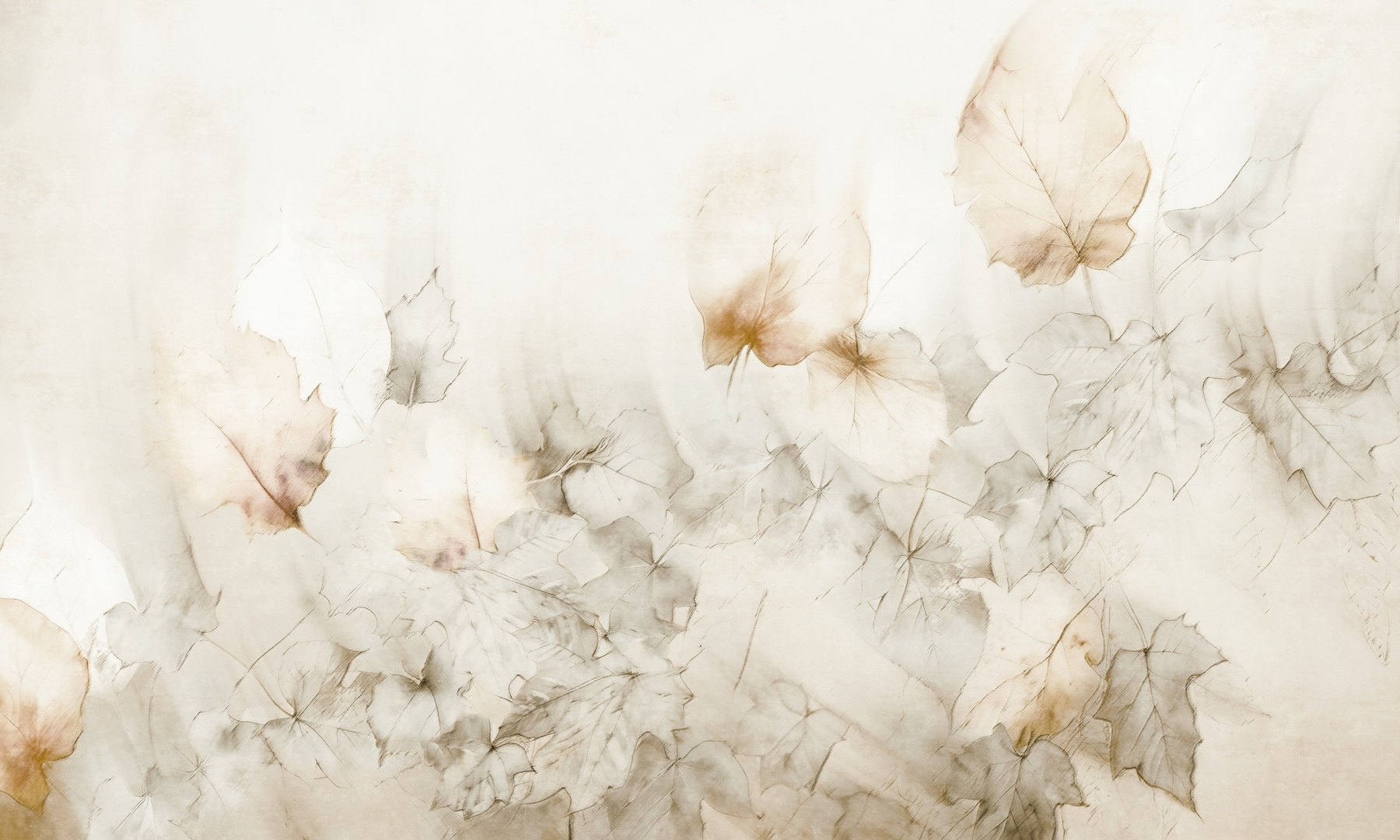 Mural Dekorami Memoir 1 prezentuje delikatny, naturalny motyw liści, który emanuje spokojem i subtelnym pięknem. Kompozycja wykonana w tonacjach beżu, szarości i ciepłych odcieni brązu wprowadzi do wnętrza element natury, który doskonale współgra z nowoczesnym, jak i klasycznym wystrojem. Liście układają się w miękkie, organiczne wzory, co nadaje muralowi lekkości i przestronności. Dzięki subtelnemu, niemal przezroczystemu efektowi, mural optycznie powiększa pomieszczenie, tworząc wrażenie głębi i otwartości. Mural Dekorami Memoir 1 jest doskonałym wyborem do sypialni, salonu lub przestrzeni komercyjnych, które wymagają harmonii i wyważonego designu. Jego elegancka kolorystyka i naturalny motyw sprawiają, że staje się nie tylko dekoracją, ale także elementem, który wnosi do wnętrza spokój i wyjątkową atmosferę.