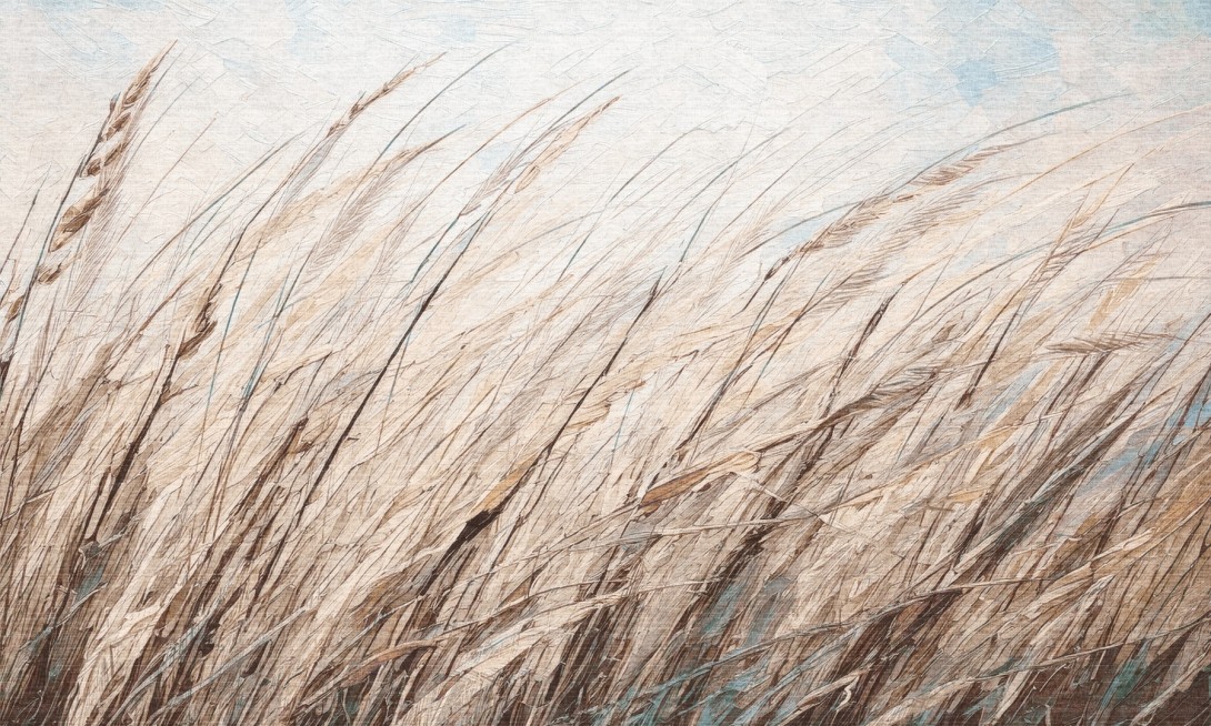 Mural Dekorami Shum 1 przedstawia harmonijną scenę falujących kłosów zboża uchwyconą w subtelnej palecie beżów, brązów i błękitów, które wzajemnie przenikają się na tle rozmytego nieba. Kompozycja zbudowana z dynamicznych linii źdźbeł i delikatnych detali graficznych tworzy iluzję ruchu – jakby wiatr właśnie przeszedł przez polne łany. Mural Dekorami Shum 1 oddaje esencję naturalnej prostoty, łącząc organiczne formy z lekkością pastelowej tonacji. Zastosowanie nieregularnych pociągnięć i tekstury przypominającej płótno sprawia, że mural przywołuje na myśl malarskie płaszczyzny krajobrazowe w stylu impresjonistycznym. Doskonale komponuje się z wnętrzami w stylu skandynawskim, japandi lub rustykalnym. Wzór ociepli przestrzeń, nie dominując jej wizualnie, a jednocześnie wprowadzi element artystycznej narracji..