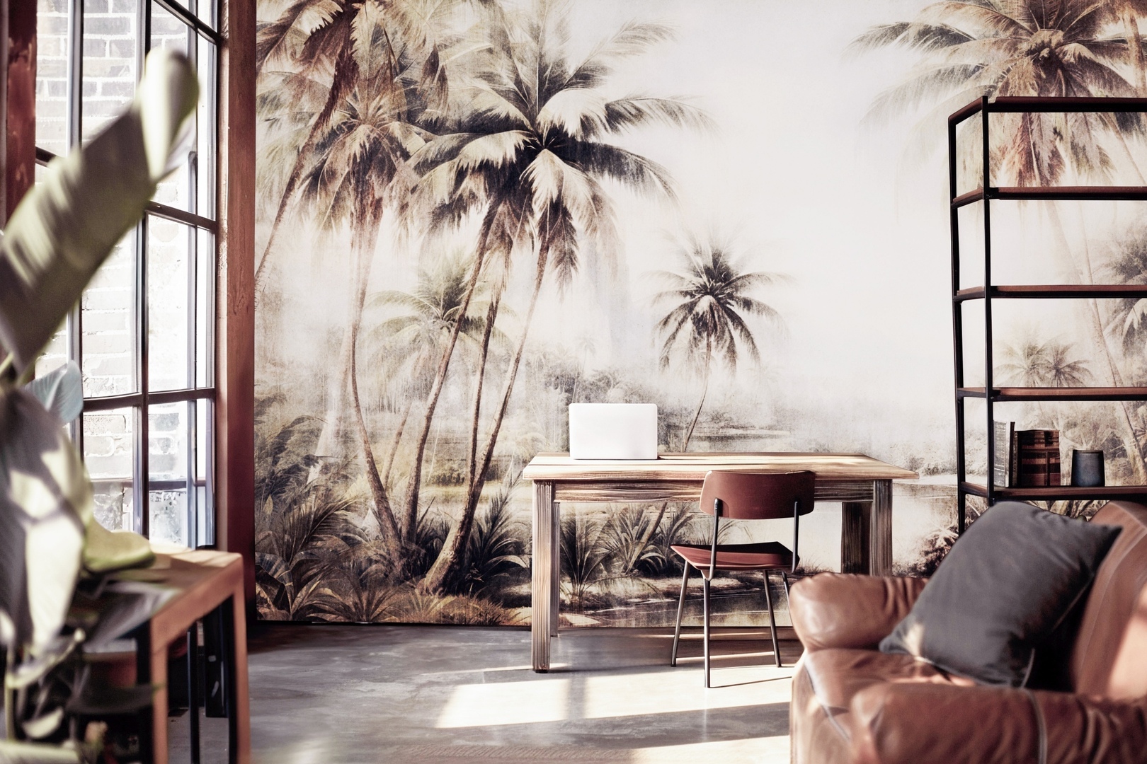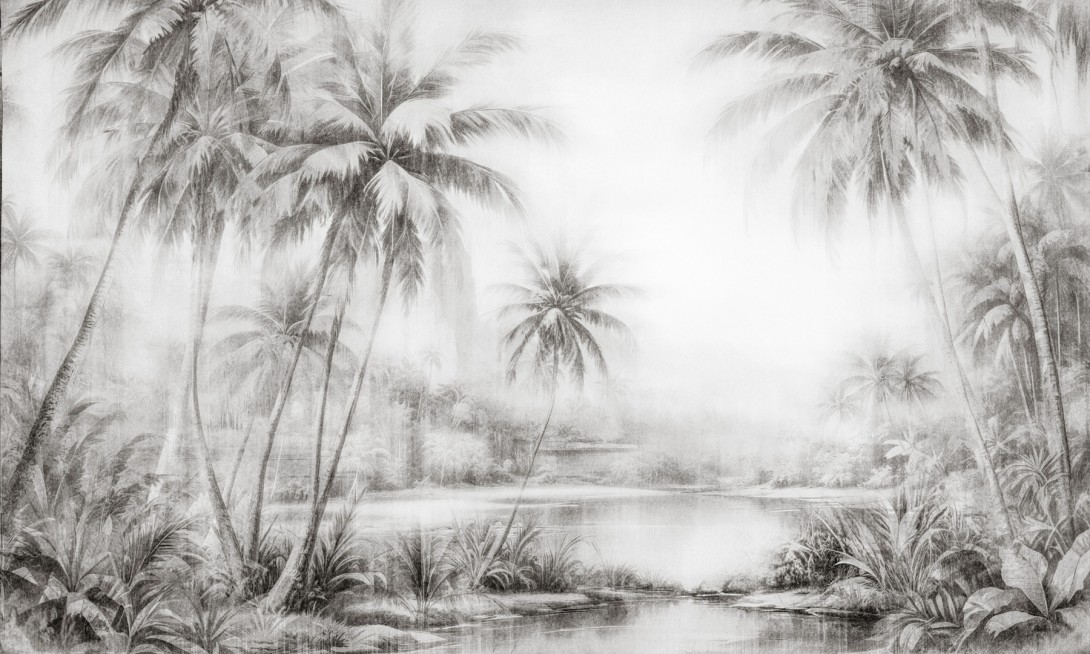 Mural Dekorami Tonga 4 przedstawia egzotyczny pejzaż w wyciszonej, monochromatycznej tonacji, która przywodzi na myśl klasyczne techniki ilustracyjne. Kompozycja bazuje na precyzyjnie zarysowanych palmach i bujnej roślinności, otulonych mglistym tłem, co nadaje całości subtelnego charakteru bez przytłaczania wnętrza. Mural Dekorami Tonga 4 harmonijnie dopełnia aranżacje w stylu japandi, urban jungle i nowoczesnym, szczególnie tam, gdzie kluczowe jest utrzymanie spójności kolorystycznej i oszczędnej formy. Idealnie sprawdza się w przestrzeniach takich jak gabinety, salony czy eleganckie hotele, gdzie liczy się nie tylko funkcjonalność, ale też estetyczna jakość detali. Dzięki stonowanej palecie wzór dobrze łączy się z betonem architektonicznym, jasnym drewnem i matowymi wykończeniami, tworząc bazę do aranżacji z wyrafinowaną prostotą.