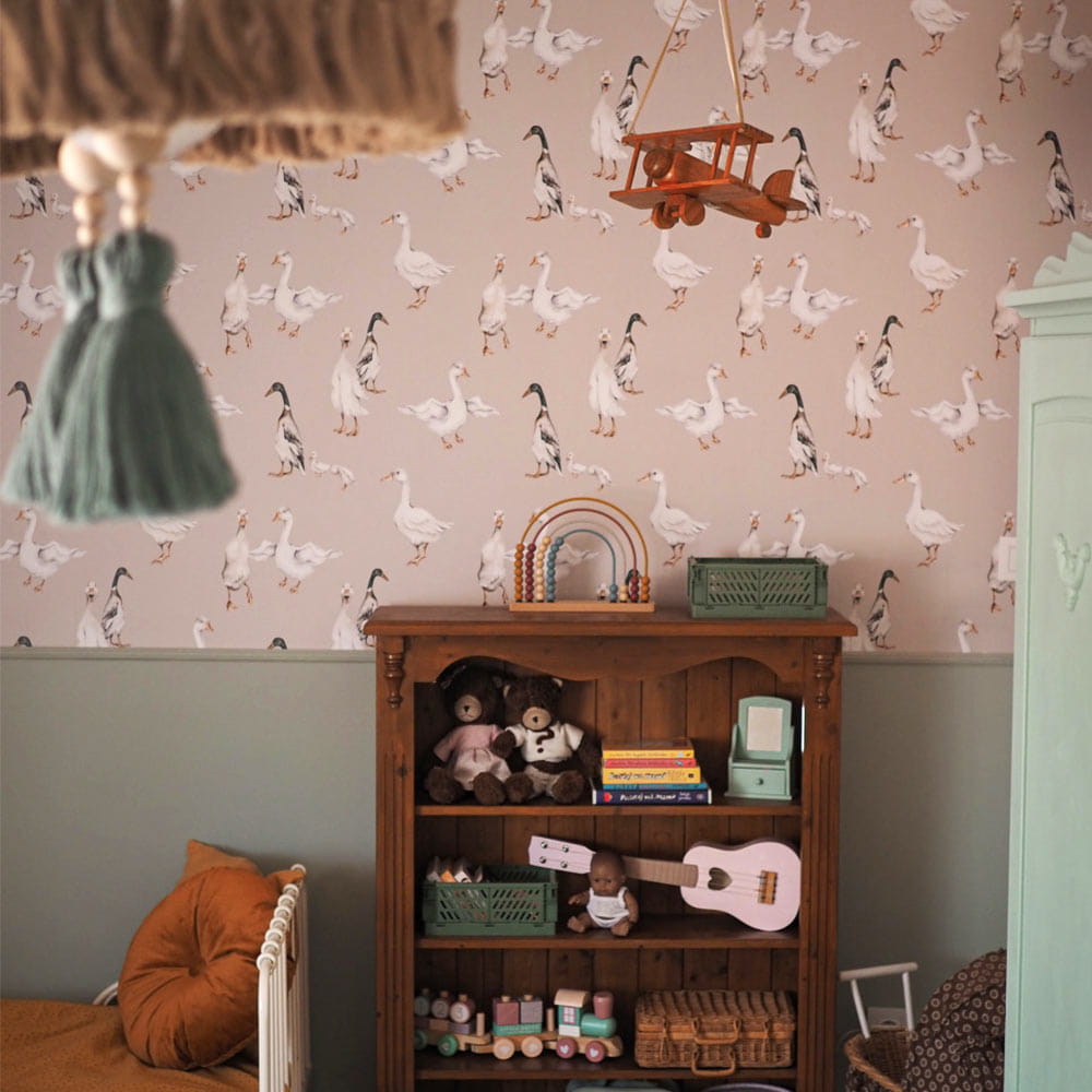 Tapeta Dekornik Białe Kaczuchy Return to Innocence DEKO.TAP.175 to dekoracja ścienna, która idealnie odnajdzie się jako ozdoba dziecięcej aranżacji. Wzór kaczek na jednolitym tle wprowadzi lekko wiejski klimat, który jednocześnie będzie zabawnym tłem, jak i oryginalną dekoracją ścienną. Tapeta Dekornik Białe Kaczuchy Return to Innocence DEKO.TAP.175 podzielona jest na pasy (bryty) stworzone z połączenia papieru i flizeliny.