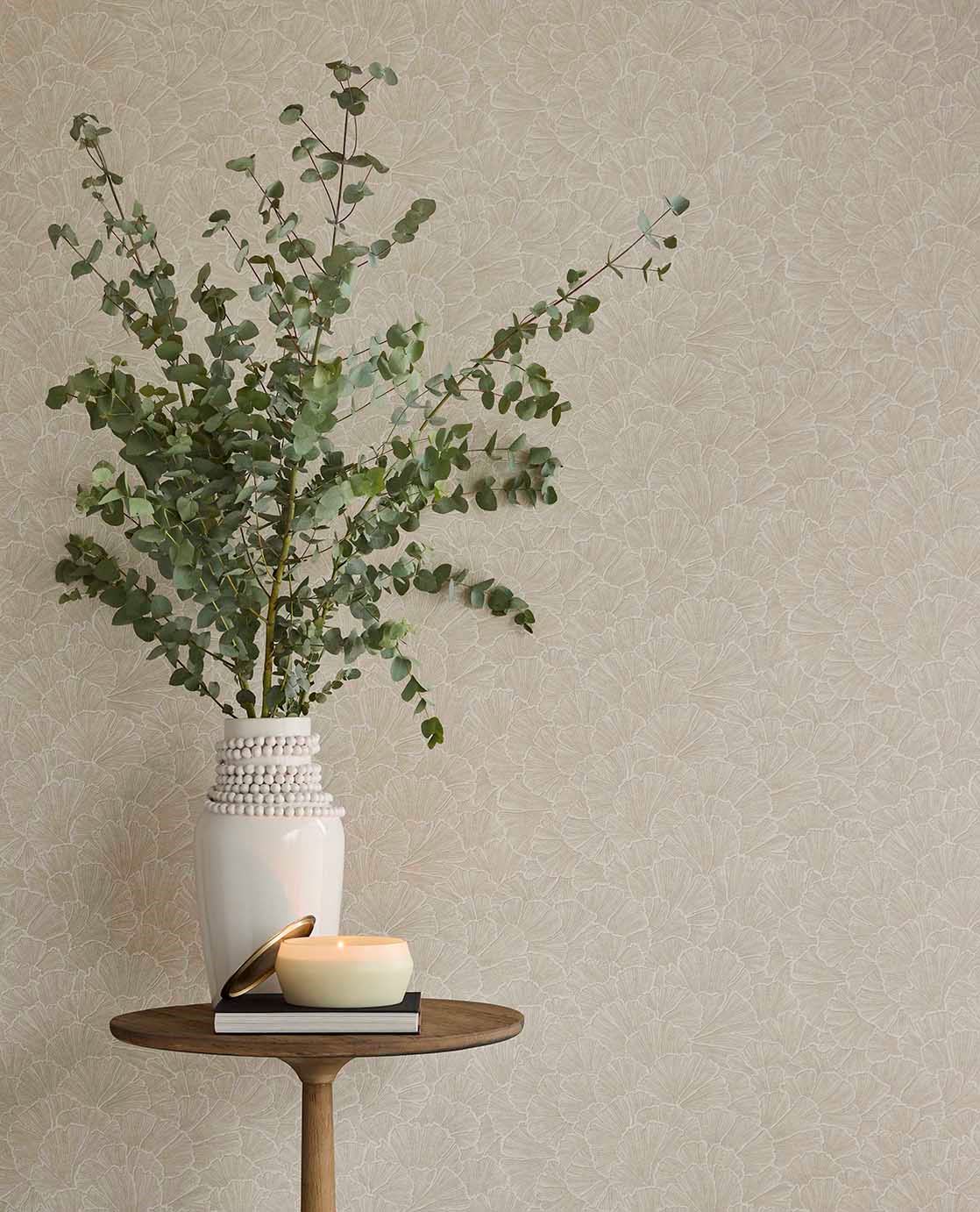Tapeta Eijffinger Riviera Maison 350522 przedstawia uporządkowany wzór liści ginkgo, narysowanych cienką linią na tle o subtelnej fakturze. Wachlarzowaty kształt liści nadaje kompozycji lekkości, a równomierny układ wzoru tworzy wrażenie rytmu i optycznego ładu. Dekoracja jest stonowana, ale pełna charakteru – nie dominuje przestrzeni, tylko delikatnie ją uzupełnia. Tapeta dobrze współgra z jasnym drewnem, kamieniem i tkaninami o wyraźnym splocie. Tapeta Eijffinger 350522 Riviera Maison sprawdzi się w aranżacjach w stylu skandynawskim, japandi, klasycznym i rustykalnym. To model, który wnosi do wnętrza spokojny detal inspirowany naturą, wspierając budowanie przytulnej, zrównoważonej przestrzeni. Idealnie nadaje się do salonu, sypialni lub korytarza, gdzie liczy się tekstura, harmonia i elegancka prostota.