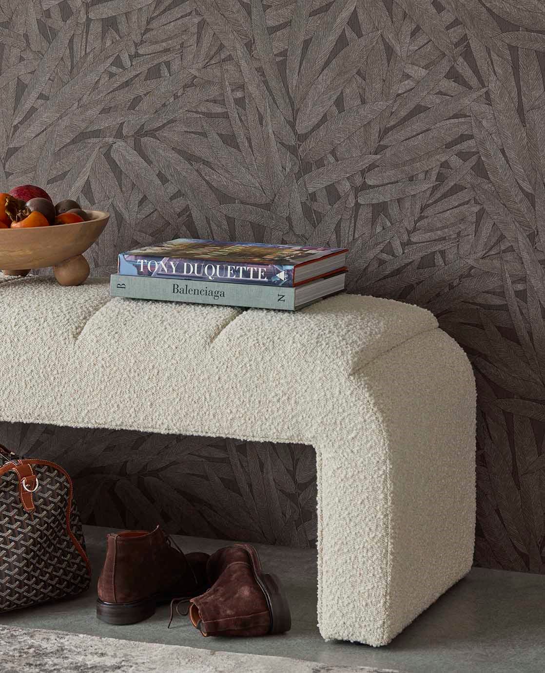 Tapeta Eijffinger Riviera Maison 350544 przedstawia gęsty układ liści narysowanych cienką, dekoracyjną kreską. Motyw opiera się na powtarzalnym rytmie, który wprowadza do wnętrza porządek i spokojny, wizualny rytm. Kompozycja jest subtelna, ale wyrazista – dobrze równoważy dekoracyjność i neutralność. Roślinny charakter wzoru sprawia, że ściana zyskuje teksturę i głębię, nie dominując przy tym przestrzeni. Tapeta dobrze współgra z jasnym drewnem, naturalnymi tkaninami i prostym wyposażeniem. Tapeta Eijffinger 350544 Riviera Maison pasuje do wnętrz urządzonych w stylu japandi, rustykalnym, skandynawskim oraz klasycznym. To model, który nadaje przestrzeni wyważonego akcentu botanicznego, wspiera estetyczną spójność i podkreśla jakość wykończenia.