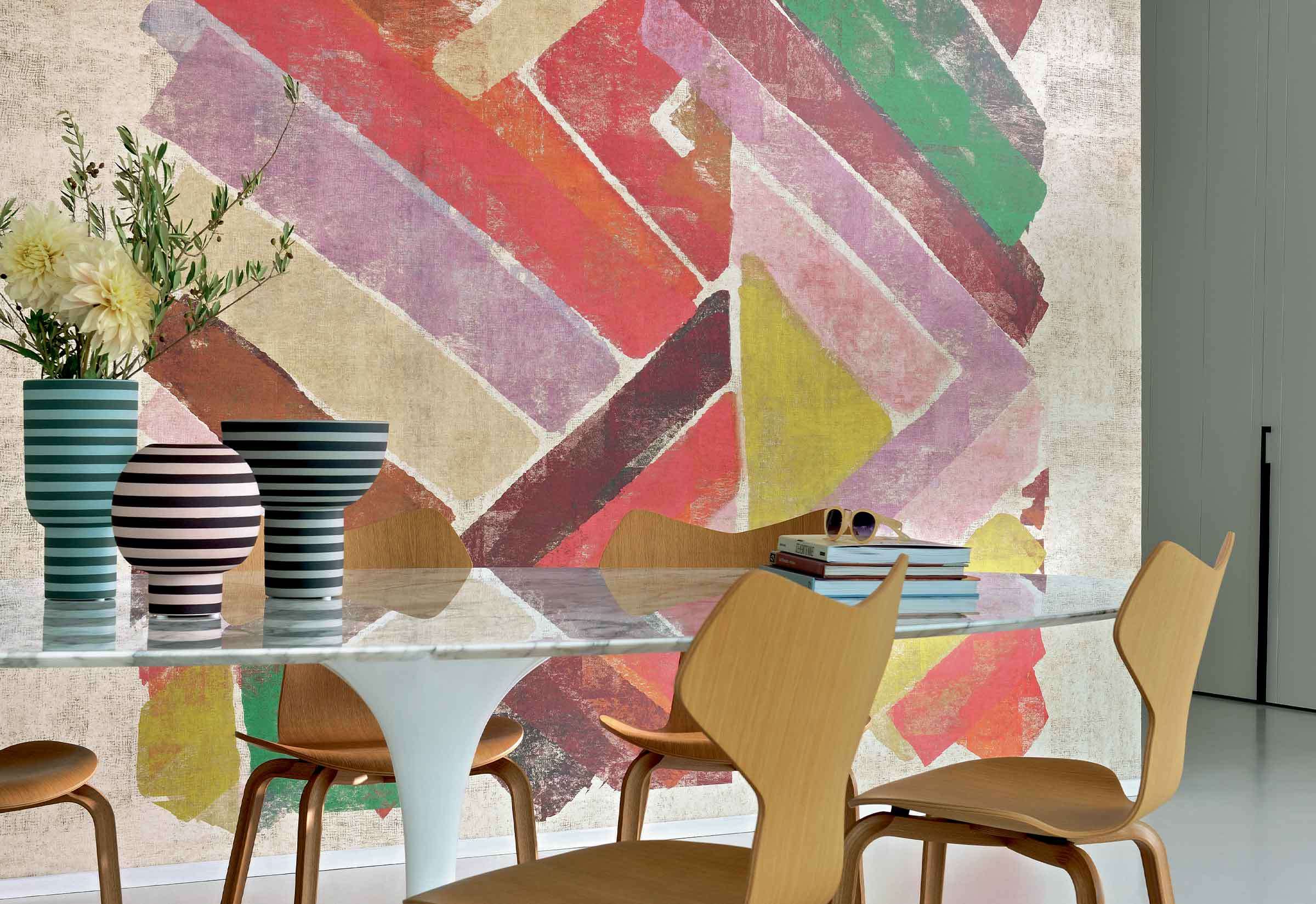 Mural Elitis Domino Allégorie RM 256 01 przedstawia wyrazistą, liniową kompozycję o silnym rytmie i graficznej dyscyplinie. Pasy ułożone w przemyślanym układzie porządkują przestrzeń i wprowadzają architektoniczną strukturę do wnętrza. Całość opiera się na równowadze między kierunkowym prowadzeniem wzroku a zmiennością proporcji, co nadaje dekoracji dynamicznego, ale kontrolowanego charakteru. Mural Elitis RM 256 01 Domino Allégorie doskonale funkcjonuje jako dekoracja tła lub pierwszy plan w aranżacjach wymagających geometrycznej precyzji i silnego akcentu wizualnego. Jego obecność wspiera koncepcje oparte na osiowości, rytmie lub pionizacji ściany. Zbalansowana paleta kolorystyczna umożliwia łatwe zestawienie z różnorodnymi materiałami i fakturami, od gładkich powierzchni po wyraźne struktury. Produkt wpisuje się w nowoczesne myślenie o dekoracji ściennej jako narzędziu kształtowania przestrzeni.