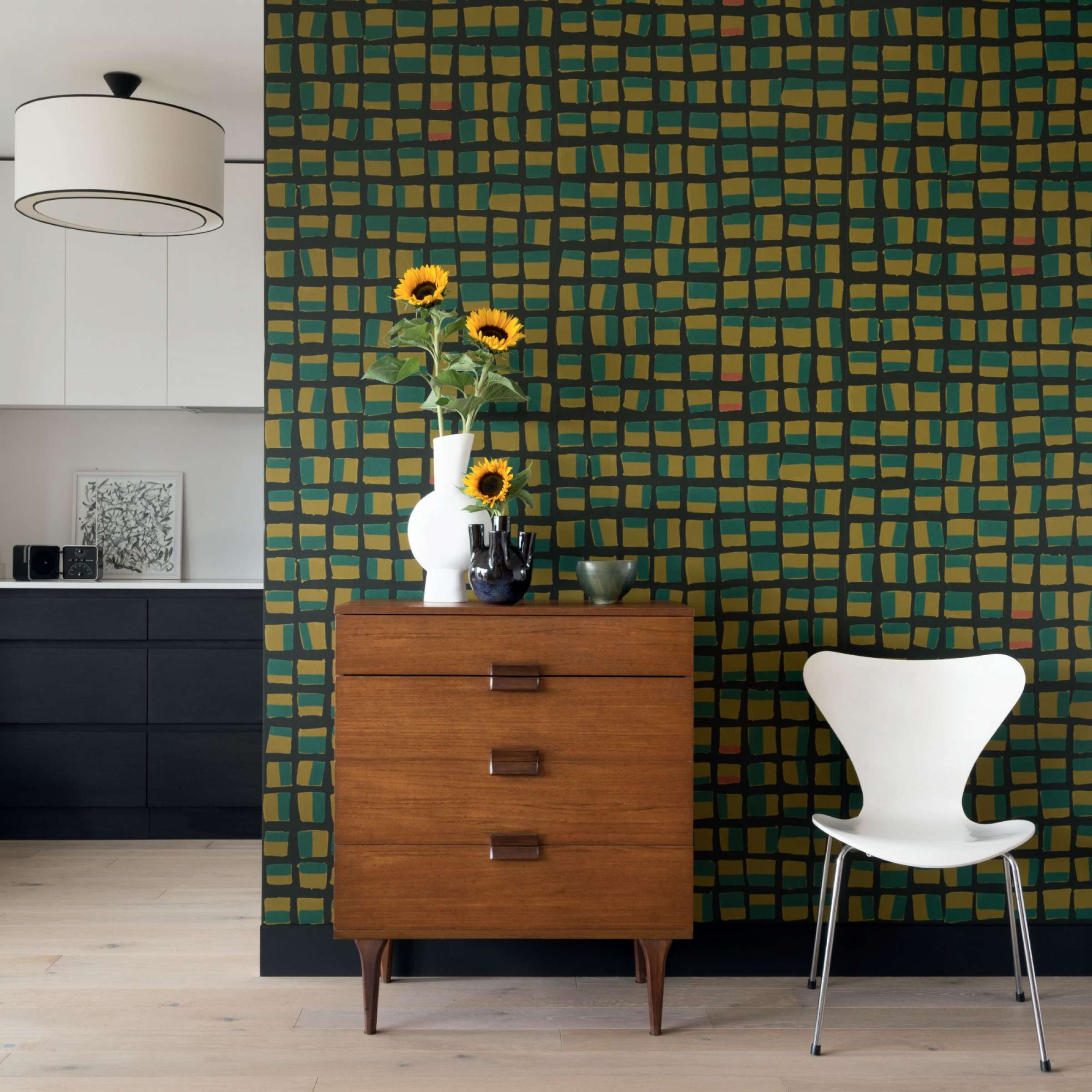 Tapeta Elitis Initiation New Age TP 312 04 prezentuje geometryczny wzór kratki w artystycznym wydaniu, który wprowadzi do wnętrz elegancję i niepowtarzalny charakter. Ten złożony motyw tworzy dynamiczną kompozycję, która doskonale pasuje zarówno do nowoczesnych, jak i klasycznych przestrzeni. Geometryczne elementy są nierówne - wyglądają, jakby zostały namalowane ręcznie. Taki efekt doda ścianom unikalnego wyrazu i stworzy inspirujące tło w różnorodnych aranżacjach. Tapeta Elitis Initiation New Age TP 312 04 idealnie sprawdzi się w salonach, sypialniach czy gabinetach. W każdym pomieszczeniu stworzy przytulną i wyrafinowaną atmosferę. Można ją zestawić z minimalistycznymi meblami, aby podkreślić jej artystyczny charakter, jak i z bogatymi teksturami i zdobionymi elementami wyposażenia. Jej unikalny motyw z pewnością przyciągnie wzrok i doda wnętrzu oryginalności i ciepła.