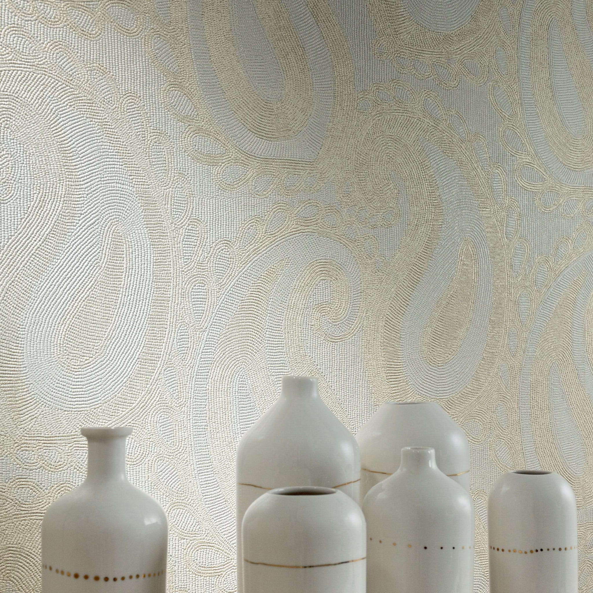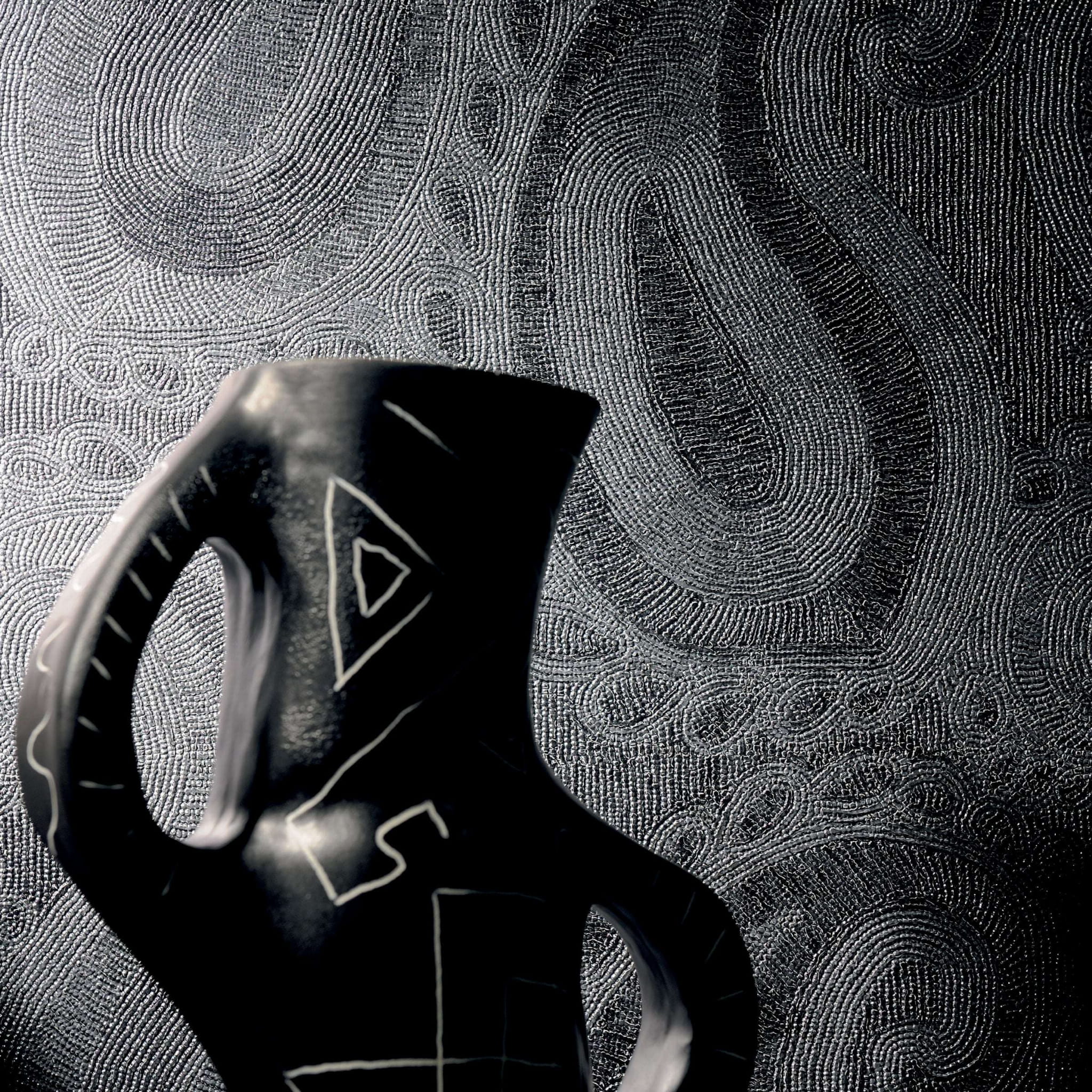 Tapeta Elitis Perles Tourmaline VP 911 01 to prawdziwe dzieło sztuki ściennej, które wyróżnia się unikalnym, koralikowym wzorem o niesamowitej głębi i złożoności. Fale i ornamenty zdają się dynamicznie wibrować, tworząc hipnotyzujący efekt, który przyciąga wzrok i nadaje przestrzeniom elegancji oraz wyjątkowego charakteru. Ciekawa struktura tapety wynika z wykorzystania tłoczonego winylu. Dekoracja zachwyca precyzyjnym odwzorowaniem detali. Jest również wyjątkowo odporna na uszkodzenia i blaknięcie, dzięki czemu sprawdzi się w wymagających aranżacjach, gdzie estetyka musi iść w parze z funkcjonalnością. Tapeta Elitis Perles Tourmaline VP 911 01 doskonale odnajdzie się w nowoczesnych i minimalistycznych przestrzeniach, ale równie dobrze prezentuje się we wnętrzach o charakterze glamour, modern classic czy eklektycznym.