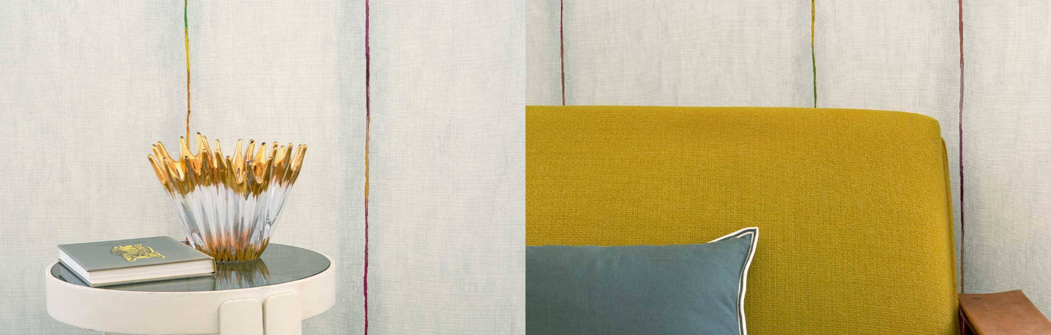 Tapeta Elitis Volver VP 921 12 Volos to ponadczasowa dekoracja ścienna, która wnosi do pomieszczeń przytulność i serdeczny klimat. Projekt przyciąga uwagę wyjątkową strukturą rafii, ozdobioną cienkim paskiem z intensywnymi kolorami, które nadają wzorowi charakteru i energii. Wzór ten układa się w nieregularne, pionowe pasy, doskonale wpasowując się zarówno we wnętrza klasyczne, jak i nowoczesne. Dzięki niej ściany nabierają ciepła i stają się bardziej przyjazne. Wzór ten stanowi idealne tło dla eleganckich mebli oraz dekoracji, takich jak zdjęcia czy obrazy. Projekt został pokryty winylem, co sprawia, że jest łatwy w utrzymaniu, odporny na plamy i uderzenia oraz trwały w ognioodporności. Dzięki tym właściwościom tapeta ta znajdzie zastosowanie praktycznie w każdej domowej przestrzeni, nawet tam, gdzie może być narażona na zabrudzenia, takie jak przedpokój czy hol. Doskonale sprawdzi się także w miejscach komercyjnych, takich jak hotele czy restauracje, gdzie elegancja i trwałość są niezwykle istotne. Tapeta Elitis Volver VP 921 12 Volos dostępna jest w trzynastu wariantach kolorystycznych.