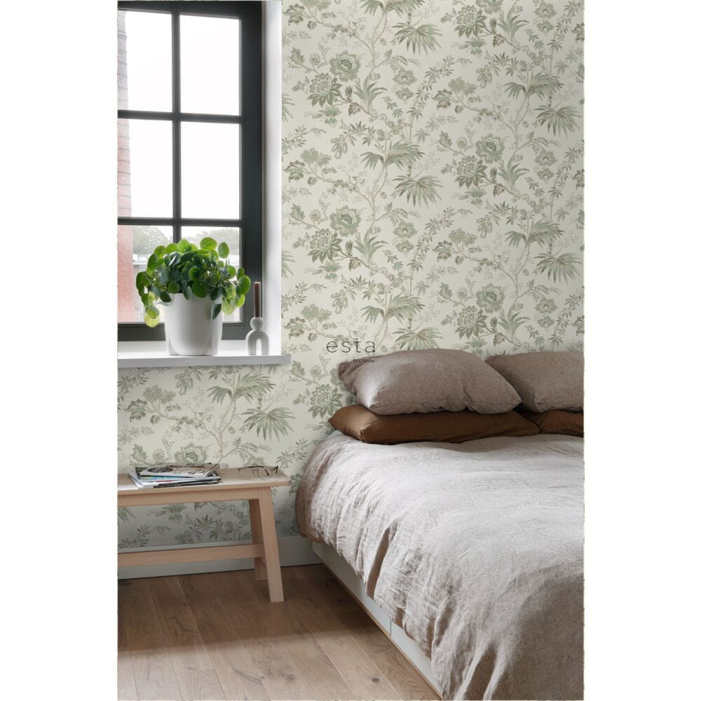 Tapeta Esta Vintage Flowers 139400 cream beige and grayish green to romantyczna dekoracja ścienna, która doda wnętrzu ciepła i charakteru. Romantyczny wygląd to eklektyczny styl, który łączy antyczne meble z pastelowymi kolorami, lnem, koronkami i pięknymi kwiatami. Ten wzór w stylu vintage to absolutny must have, jeśli kochasz ten delikatny i marzycielski styl. Tapeta Esta 139400 Vintage Flowers cream beige and grayish green ożywi ściany i wprowadzi do Twojego wnętrza ciepłą i romantyczną atmosferę.