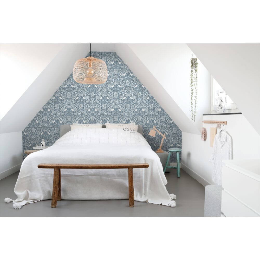 Tapeta Esta Vintage Flowers flowers and birds in art nouveau style grayed vintage blue 139477 to modna dekoracja z kwiatami i ptakami, która jest idealna do stworzenia pięknego akcentu ściennego i nadania pomieszczeniu ciepłej, żywej atmosfery. Projekt w stylu vintage zapewnia ciepłą, żywą atmosferę w każdym pomieszczeniu. Zapewnij swojemu domowi żywą aktualizację, na jaką zasługuje! Tapeta Esta Vintage Flowers flowers and birds in art nouveau style grayed vintage blue 139477 ożywi ściany i wprowadzi do Twojego wnętrza ciepłą i romantyczną atmosferę.