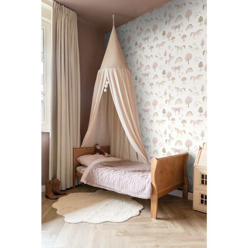 Tapeta Esta To the moon and back Unicorns beige and soft pink 139503 prezentuje bajkowy wzór jednorożców, który wprowadza do wnętrza atmosferę łagodności, fantazji i dziecięcej radości. Stylizowane postacie ułożono w rytmicznej, lekkiej kompozycji, dzięki której dekoracja optycznie porządkuje przestrzeń i dodaje jej przytulności. Tapeta doskonale komponuje się z jasnymi meblami, pastelowymi dodatkami i naturalnymi tekstyliami, tworząc spójne tło dla codziennych aktywności dziecka. Tapeta Esta 139503 To the moon and back Unicorns beige and soft pink wnosi do pokoju marzycielski klimat, który sprzyja wyciszeniu, a jednocześnie pobudza wyobraźnię. Sprawdza się zarówno w strefie snu, jak i w miejscu zabawy czy nauki. Wykonano ją na podkładzie flizelinowym, który umożliwia szybki montaż oraz łatwe usunięcie bez naruszenia ściany. To dekoracja zaprojektowana z myślą o harmonii dziecięcych wnętrz i funkcjonalności codziennego użytkowania.