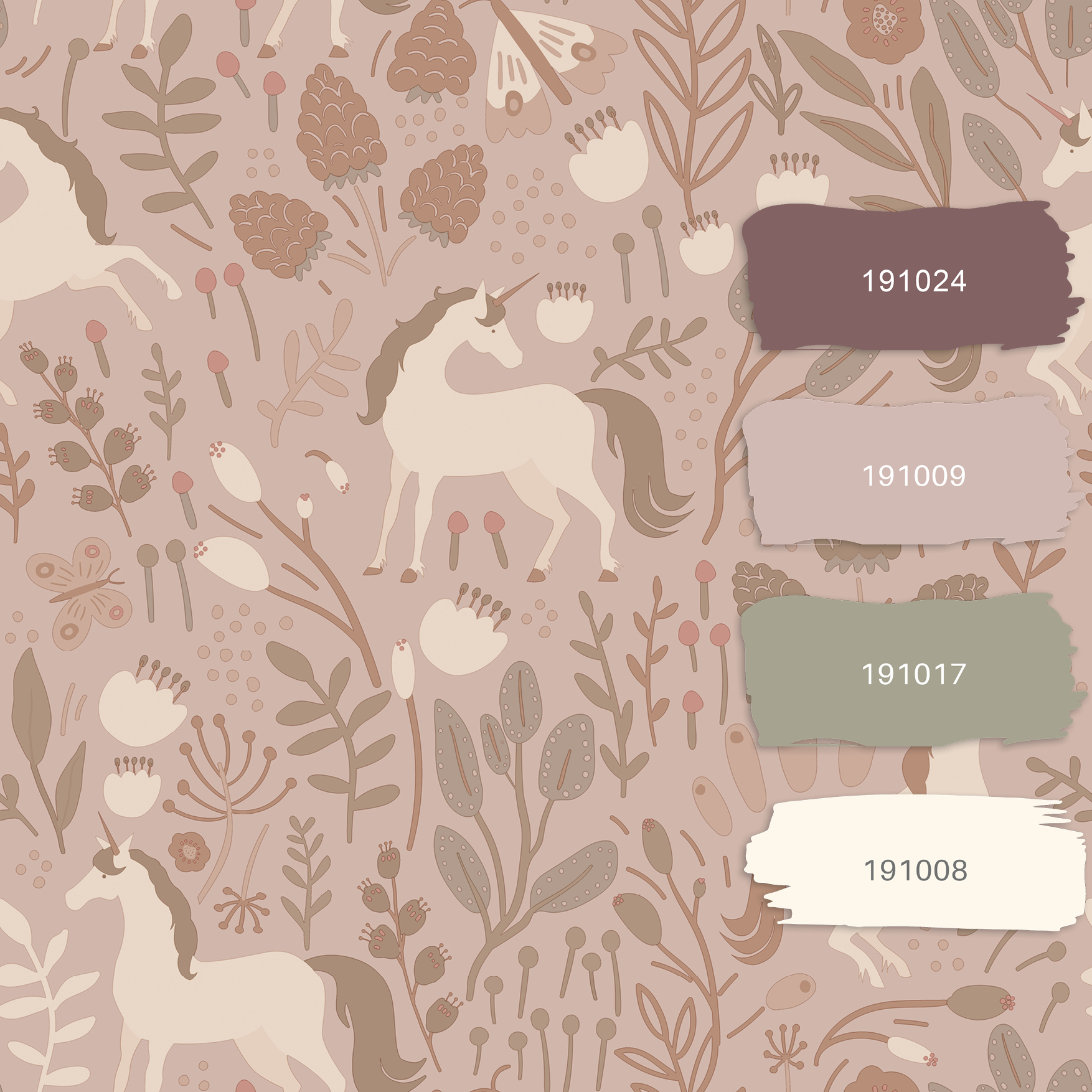 Esta 139806 Pom Pom Pie Unicorns beige and terracotta pink - tapeta dla dzieci w jednorożce i rośliny