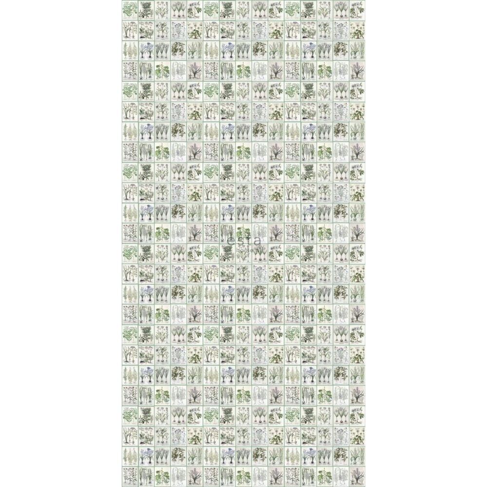 Mural Esta Vintage Flowers 159229 pages of a botanical book green to romantyczna dekoracja z kafelkami w bukiety kwiatów, który doda wnętrzu ciepła i charakteru. Romantyczny wygląd to eklektyczny styl, który łączy antyczne meble z pastelowymi kolorami, lnem, koronkami i pięknymi kwiatami. Ten wzór w stylu vintage to absolutny must have, jeśli kochasz ten delikatny i marzycielski styl. Mural Esta 159229 Vintage Flowers pages of a botanical book green ożywi ściany i wprowadzi do Twojego wnętrza ciepłą i romantyczną atmosferę.