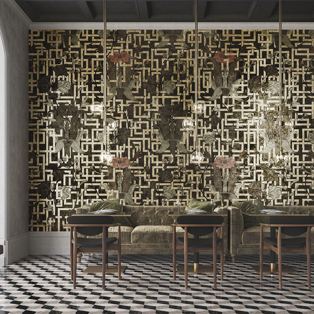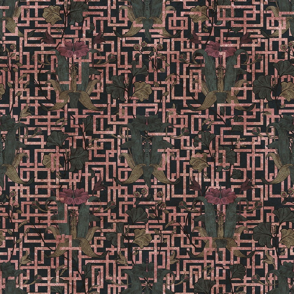 Fototapeta Inkiostro Bianco Goldenwall 2020 Nouveau INKTGQD2002 to efektowna dekoracja, która pozwoli całkowicie odmienić stylistykę wnętrz i wprowadzi królewską atmosferę. Wijące się na całej powierzchni wzory tworzą labirynt, w który wpleciono elementy florystyczne. Całość sprawia wrażenie przestrzenności i pięknie buduje głębię. Połyskujący złotem materiał Gold Leaf nada wnętrzom ekstrawagancji. Kolorystyka jest zdominowana przez odcienie różowego złota połączone z barwami kwiatów. Mural Inkiostro Bianco Goldenwall 2020 Nouveau INKTGQD2001 doskonale prezentuje się na ścianie nowoczesnego salonu, sypialni oraz w jadalni. Sprawdzi się zarówno w domu, jak i w miejscach użyteczności publicznej.