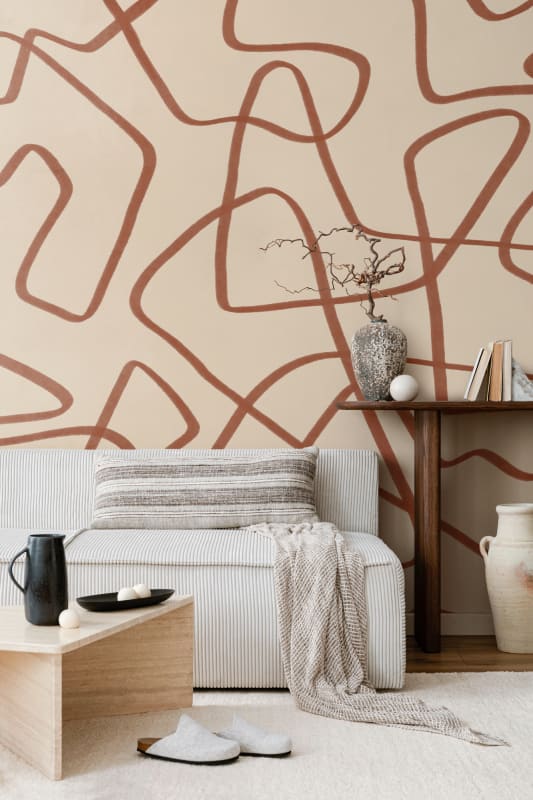 Mural Hovia Freeflow Red Clay AB0001WH03W przyciąga wzrok nieprzewidywalnym rytmem rdzawych linii, które snują się po powierzchni w organiczny, pozornie przypadkowy sposób. Na tle jasnego beżu rysunek o płynnej dynamice zyskuje rzeźbiarski charakter i wnosi do wnętrza artystyczną energię. Model Hovia AB0001WH03W Freeflow Red Clay to dekoracja, która łączy graficzną prostotę z impulsem ekspresyjnego gestu, idealnie wpisując się w stylistykę współczesnego minimalizmu z nutą postmodernistycznego luzu. Niejednoznaczność form buduje napięcie wizualne, nie zakłócając przy tym równowagi aranżacyjnej. Doskonale sprawdza się w przestrzeniach, które potrzebują wyrazistego tła – jadalniach, holach, nowoczesnych salonach lub studiach twórczych.