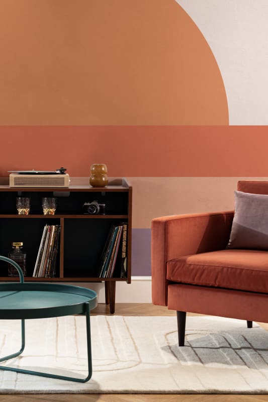 Mural Hovia Sundown AB0097OR02W zachwyca dynamiczną kompozycją inspirowaną estetyką lat 70. Intensywne pasy w ciepłych odcieniach pomarańczu i fioletu tworzą energetyczny akcent, który wprowadza do wnętrza ducha retro i nostalgię minionych dekad. Połączenie wyrazistych kolorów z surową fakturą betonu w tle nadaje muralowi surowego, ale zarazem przytulnego charakteru. Doskonały do przestrzeni, które potrzebują wyrazistego punktu centralnego, takich jak salon, sypialnia czy stylowe domowe biuro. Harmonizuje zarówno z nowoczesnym wyposażeniem, jak i eklektycznym wystrojem, tworząc kontrast, który przyciąga wzrok. Wprowadza przyjemną, ciepłą atmosferę, idealną do miejsc, w których liczy się komfort i swobodny klimat. Mural Hovia AB0097OR02W Sundown to niebanalny wybór dla osób poszukujących efektownych rozwiązań dekoracyjnych, które jednocześnie nawiązują do ponadczasowej klasyki w nowoczesnym wydaniu.