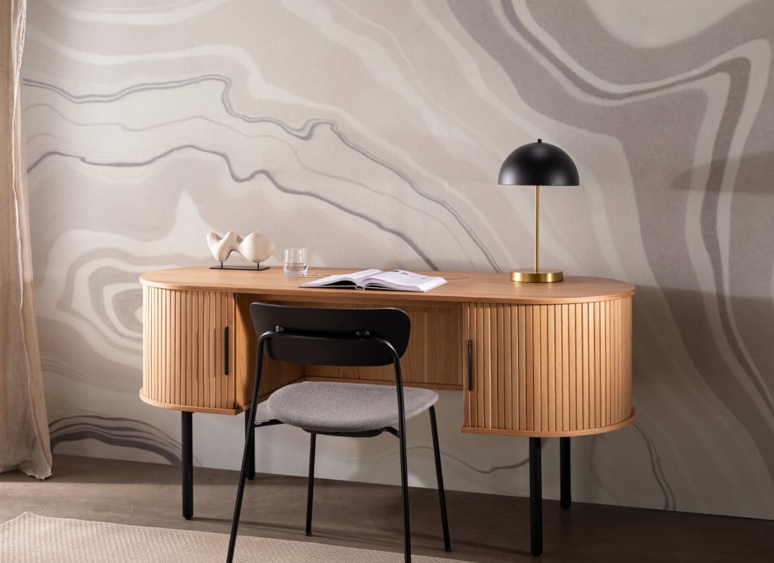 Mural Hovia Konya AB0120NE03W emanuje spokojem i minimalistycznym wdziękiem, łącząc naturalne odcienie beżu, szarości i bieli w subtelnej kompozycji. Inspiracja starożytną techniką „suminagashi” nadaje wzorowi wyjątkowego charakteru, w którym płynne, organiczne linie delikatnie wiją się na powierzchni, tworząc efekt marmurkowania. Każdy szczegół został uchwycony z niezwykłą precyzją, co pozwala dostrzec finezję malarskich zawirowań i głębię tekstury. Ten mural doskonale komponuje się z naturalnymi materiałami i stonowanymi dodatkami, nadając wnętrzu harmonii i wyrafinowania. Dzięki wysokiej jakości druku wzór zachowuje pełną intensywność barw i realistyczność detali, co sprawia, że mural staje się centralnym punktem każdego pomieszczenia. Mural Hovia AB0120NE03W Konya idealnie wpasowuje się w nowoczesne wnętrza o minimalistycznym charakterze, wprowadzając atmosferę wyciszenia i elegancji. To doskonały wybór do salonu, sypialni, gabinetu czy przestrzeni relaksu, gdzie jego delikatne, organiczne linie subtelnie ożywią przestrzeń i nadadzą jej artystycznego sznytu.