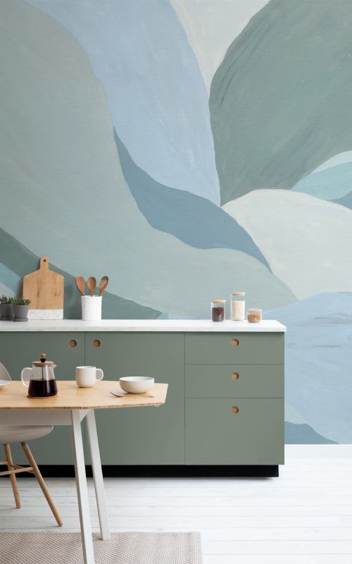 Mural Hovia Flow Blue AB0266BU04W przedstawia abstrakcyjną interpretację liści inspirowaną ręcznie malowanym oryginałem z wyraźnie widoczną fakturą pędzla. Kompozycja bazuje na miękkich, nieregularnych kształtach w palecie błękitów, szałwii i turkusu, przełamanych subtelną szarością. Dekoracja wyróżnia się dużym formatem wzoru i wizualną lekkością, która nada wnętrzu głębi i rytmu. Model Hovia AB0266BU04W Flow Blue pasuje do aranżacji o charakterze nowoczesnym, skandynawskim lub organicznym. Harmonijne zestawienie chłodnych tonów z malarską ekspresją sprawia, że mural staje się efektownym akcentem w salonie, domowym biurze albo sypialni. Wprowadzi spokojną atmosferę i podkreśli indywidualny styl przestrzeni.