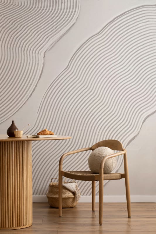 Mural Hovia Sculpt Neutral AB0425WH04W prezentuje minimalistyczną strukturę inspirowaną naturalnymi formacjami terenu. Dekoracja oparta na ręcznie wykonanych rowkach przyciąga wzrok subtelną dynamiką światłocienia i wyraźnie zaznaczoną głębią faktury. Stonowana paleta kremów i złamanych bieli współgra z miękkim układem linii, nadając ścianie rzeźbiarskiego charakteru. Model Hovia AB0425WH04W Sculpt Neutral wpisuje się w założenia stylu organic modern, japandi i nowoczesnego – sprawdzi się wszędzie tam, gdzie ważny jest wizualny balans, prostota materiałów i architektoniczna dyscyplina. W salonie lub gabinecie stanie się integralnym elementem aranżacji, scalającym bryły i tekstury we wnętrzu. To mural o wyważonej estetyce, który nie dominuje, lecz definiuje przestrzeń swoją fakturą, precyzją wykonania i spokojnym, naturalnym rytmem.