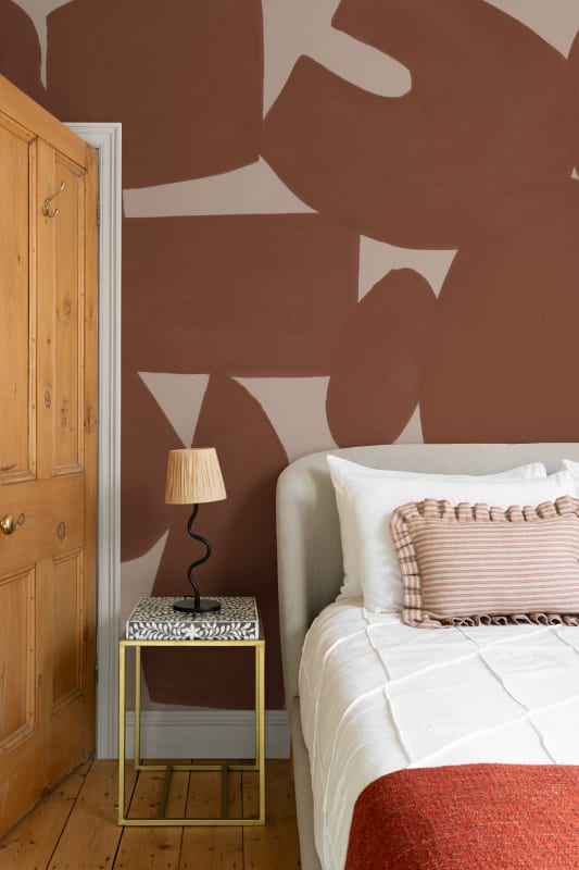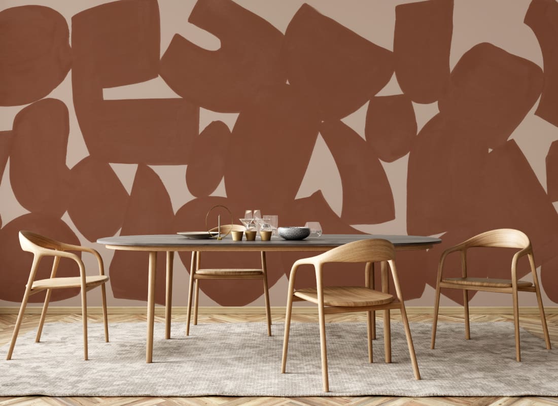 Mural Hovia Wabi Terracotta AB0445OR03W przedstawia wyrazistą kompozycję inspirowaną japońskim minimalizmem i współczesnym rzemiosłem. Duże, organiczne formy w ciepłym odcieniu terakoty kontrastują z neutralnym, piaskowym tłem, tworząc dynamiczną, ale harmonijną strukturę. Widoczne ślady pędzla podkreślają malarski charakter modelu, wprowadzając do wnętrza fakturę i zmysłową głębię. Nasycona, ziemista kolorystyka dodaje wnętrzom naturalnej równowagi i ciepła. Mural Hovia AB0445OR03W Wabi Terracotta doskonale wpisuje się w stylistykę współczesnych przestrzeni – od nowoczesnych jadalni, po minimalistyczne strefy relaksu. Dekoracja przyciąga uwagę swoją monumentalnością i graficzną odwagą, jednocześnie podtrzymując wrażenie łagodności i wizualnego balansu.