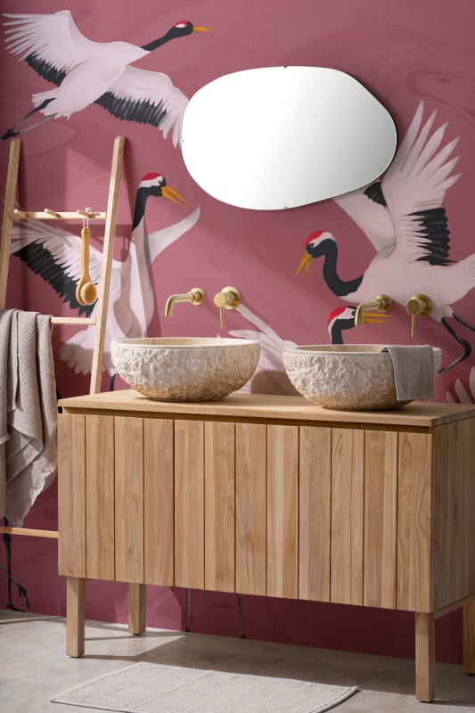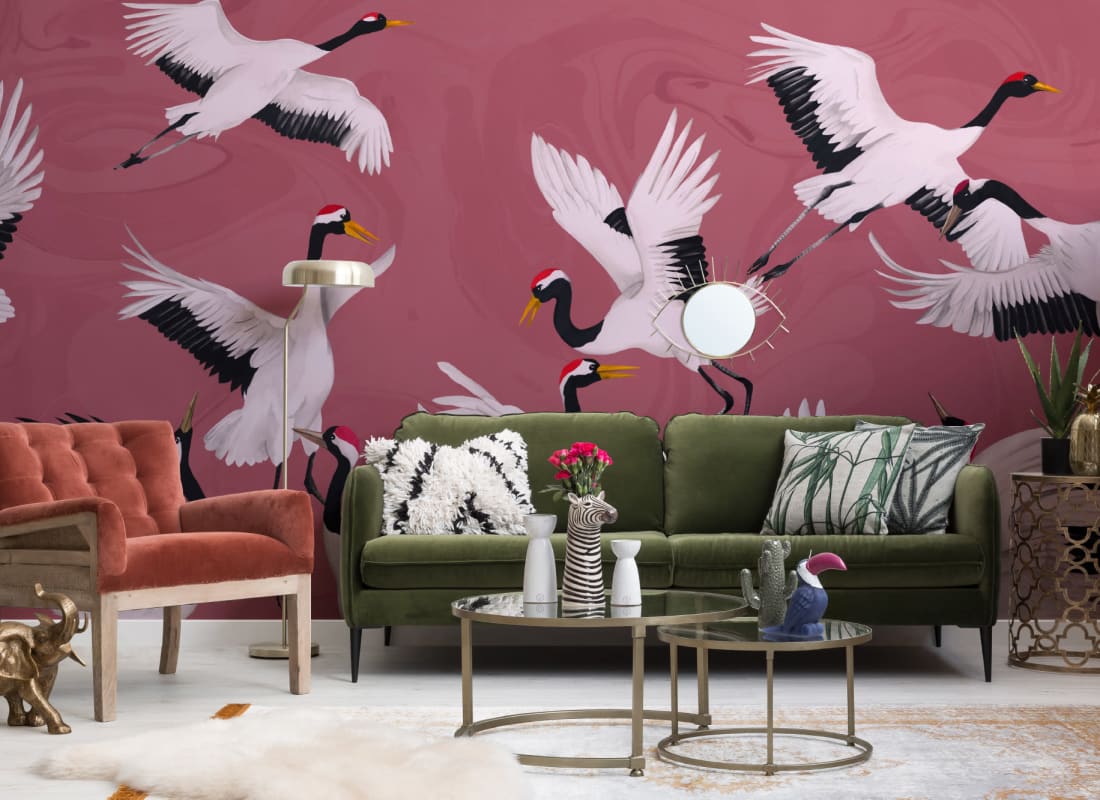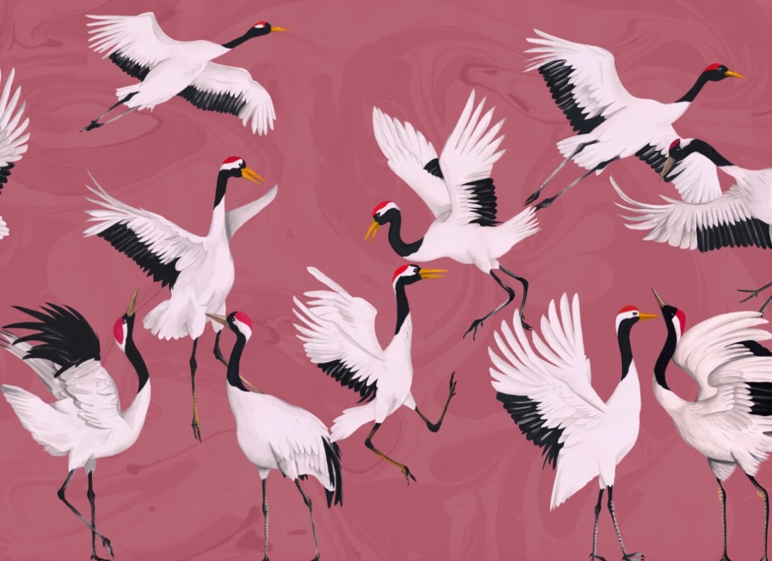 Mural Hovia Tancho Pink AN0052PI03W prezentuje dynamiczną kompozycję żurawi na intensywnym tle w odcieniu ciepłego różu. Motyw nawiązuje do symboliki dalekowschodniej, gdzie sylwetki ptaków oznaczają pomyślność i długowieczność. Charakterystyczne czerwone akcenty na głowach kontrastują z czarno-białym upierzeniem, co wzmacnia graficzny rytm dekoracji. Model świetnie współgra z eklektycznym wystrojem, odnajduje się również w odważnych aranżacjach retro i nowoczesnych przestrzeniach z artystycznym zacięciem. Mural Hovia Tancho Pink AN0052PI03W łączy lekkość malarskiego gestu z ekspresją koloru, dzięki czemu może stanowić centralny punkt stylistyczny we wnętrzu.