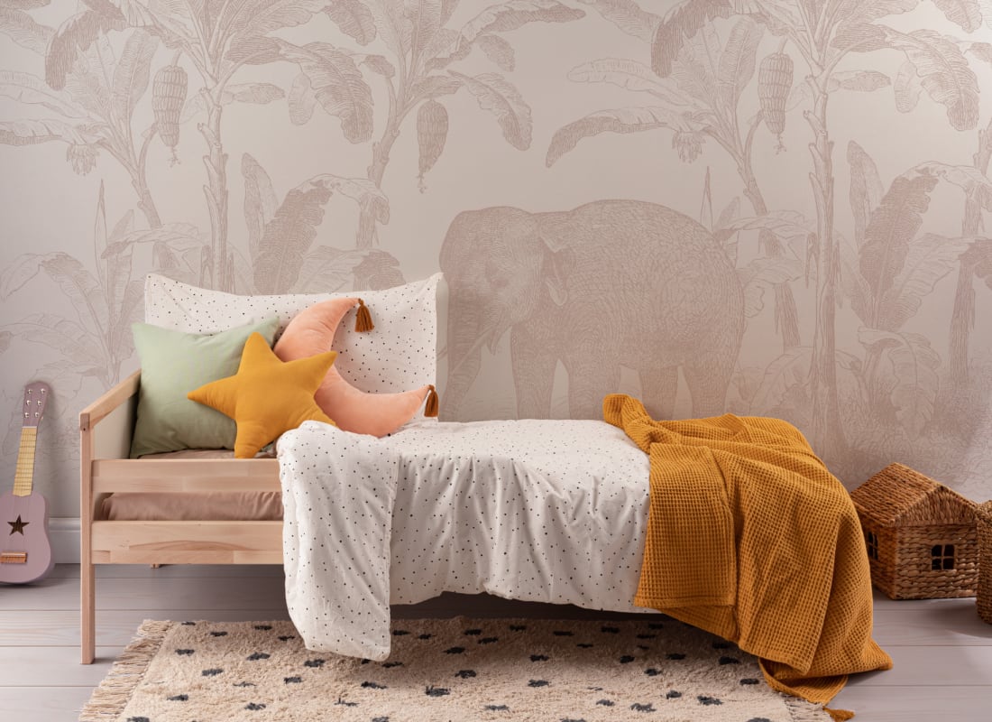 Mural Hovia Loxodonta Pink AN0559PI04W przedstawia ręcznie ilustrowany krajobraz z motywem słonia w otoczeniu bujnej roślinności tropikalnej. Wzór wykorzystuje precyzyjny rysunek i subtelne odcienie pudrowego różu, tworząc dekorację, która łączy łagodność barw z klasyczną formą graficzną. Produkt Hovia AN0559PI04W Loxodonta Pink wyróżnia się harmonijnym połączeniem nostalgii i nowoczesnej elegancji. Ilustracje roślin oraz sylwetka słonia wpisują się w estetykę vintage, a jednocześnie idealnie pasują do współczesnych aranżacji z naturalnymi teksturami i jasnym drewnem. Mural dobrze sprawdzi się w pokojach dziecięcych, sypialniach i przestrzeniach wypoczynkowych. Zapewni delikatne tło, które wprowadzi do wnętrza spokój i ciepło, jednocześnie nadając mu subtelnie egzotycznego charakteru.