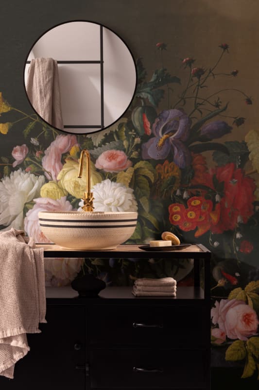 Mural Hovia Roesen AR0044DA03W zachwyca mistrzowską kompozycją inspirowaną malarstwem Severina Roesena, prezentującą bogaty bukiet kwiatów i owoców w stylu klasycznym. Imponująca feeria barw, od soczystych czerwieni i głębokich fioletów, po subtelne pastele i wyraziste akcenty zieleni, tworzy spektakularny efekt głębi i naturalnego realizmu. Mural Hovia AR0044DA03W Roesen doskonale wpisuje się w eleganckie wnętrza salonów oraz jadalni, gdzie stworzy efektowny punkt centralny, wzbudzający zachwyt i nadający przestrzeni artystycznego charakteru. Dzięki precyzyjnemu odwzorowaniu szczegółów, od delikatnych płatków, po fakturę owoców, model ten wprowadza do wnętrza nutę luksusu i ponadczasowej estetyki. Doskonale komponuje się z meblami w stylu vintage oraz wyrafinowanymi dodatkami, podkreślając klimat wykwintnego wnętrza.
