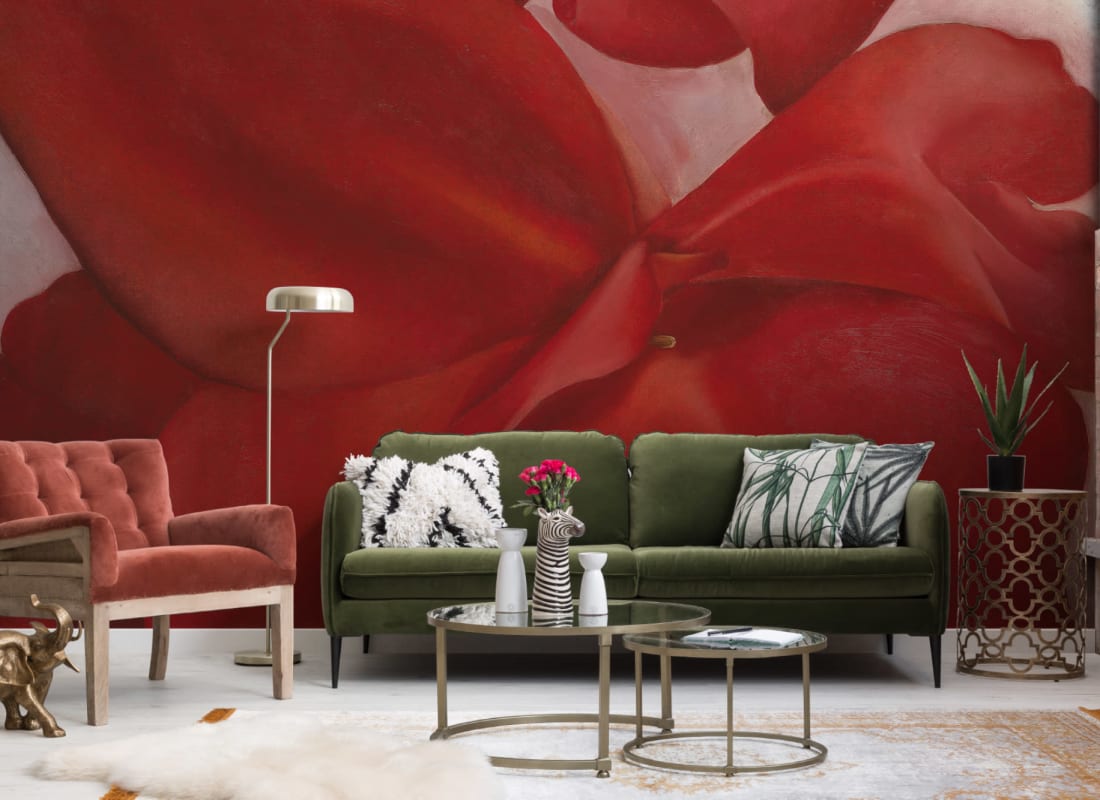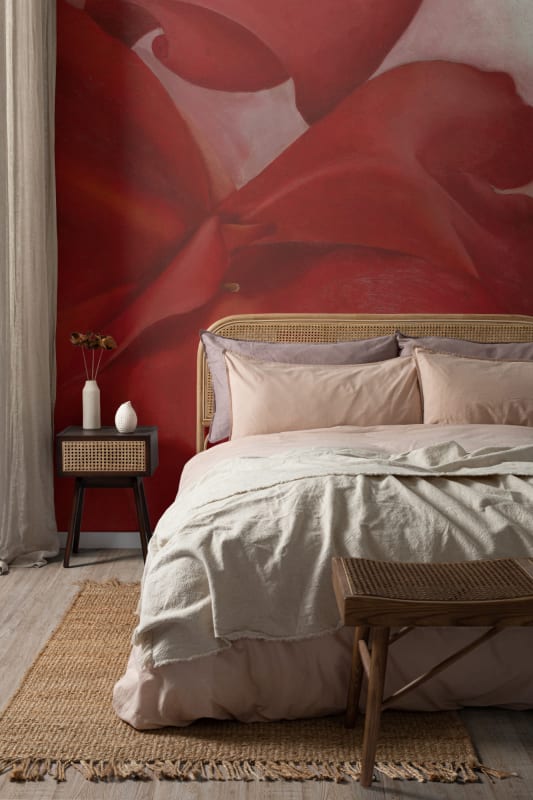 Mural Hovia Cannas AR0057RE30W prezentuje spektakularny motyw dużego czerwonego kwiatu, który emanuje siłą i energią. Intensywna, głęboka czerwień w połączeniu z płynnie namalowanymi płatkami nadaje kompozycji wyrazistości i artystycznego charakteru. Inspirowany twórczością Georgii O'Keeffe wzór oddaje esencję naturalnej pasji i wyrazistej elegancji. Dekoracja doskonale sprawdza się we wnętrzach, w których dominuje wyrafinowany styl, tworząc przykuwający wzrok punkt centralny. Mural Hovia AR0057RE30W Cannas znakomicie komponuje się z ciemnymi, welurowymi meblami oraz metalicznymi dodatkami, wprowadzając atmosferę luksusu i artystycznego wyrazu. Produkt może być montowany zarówno w orientacji pionowej, jak i poziomej, co pozwala na pełną swobodę aranżacji. Idealnie nadaje się do salonów, przestronnych korytarzy oraz stylowych jadalni, gdzie wnosi wyrafinowany dramatyzm i żywą kolorystykę. Wysoka jakość druku oraz precyzyjne odwzorowanie detali gwarantują trwałość i intensywność barw.