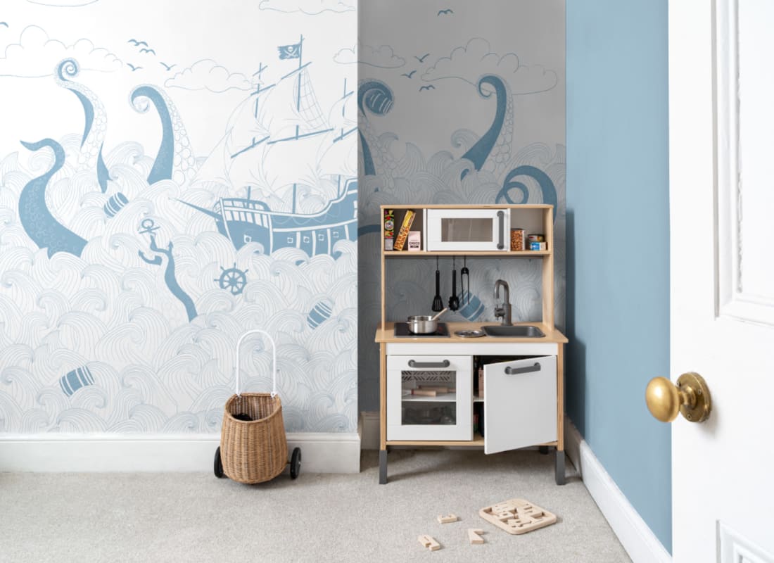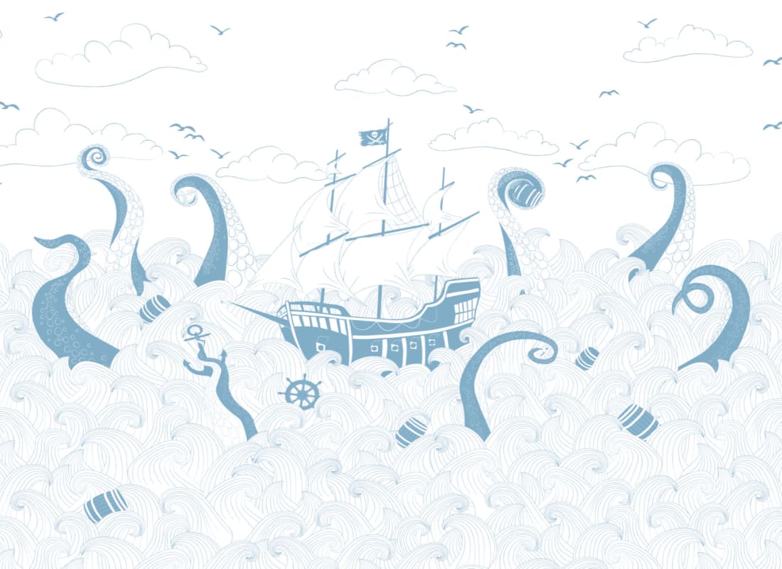 Hovia CH0080BH04W Kraken Blue - mural dla dzieci w morski pejzaż i piracki statek