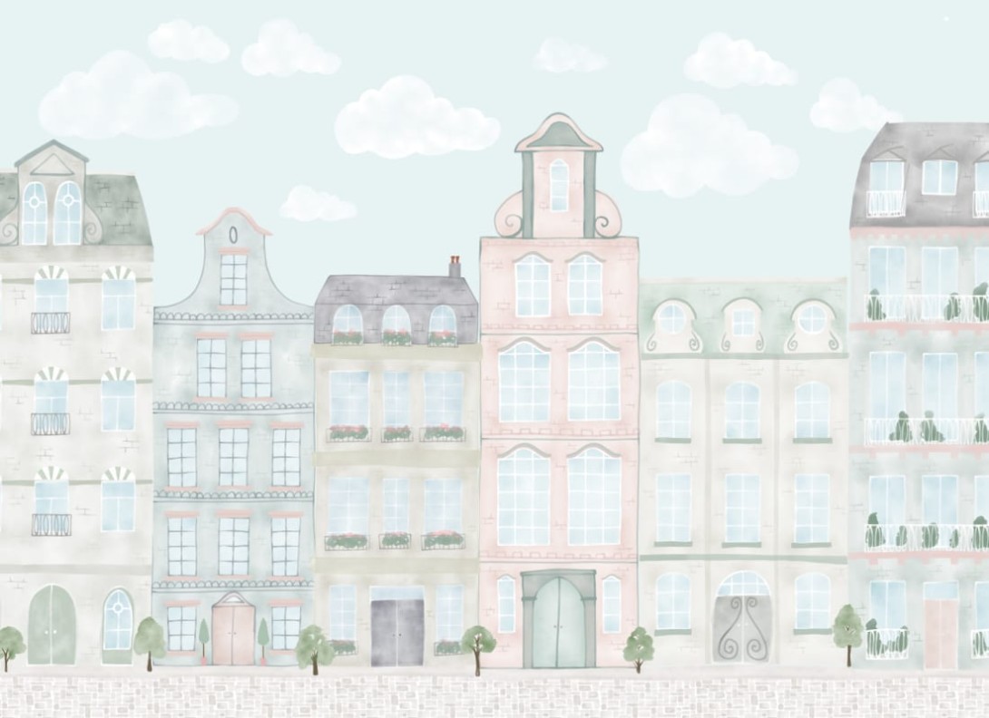 Mural Hovia Quaint CH0095MU04W wprowadzi do dziecięcego wnętrza przyjazny świat miejskiej architektury, zaprojektowany z myślą o estetyce i funkcjonalności przestrzeni. Dekoracja prezentuje rząd stylizowanych kamienic w miękkiej palecie pastelowych barw – dominuje subtelny róż, błękit, delikatna zieleń oraz rozbielony beż. Każdy budynek został ręcznie zilustrowany w technice akwareli, co nadaje wzorowi miękkości i wizualnej lekkości. Mural wprowadza rytm pionów i poziomów, jednocześnie zachowując dziecięcy, nieformalny charakter. Dzięki dużej skali detali model będzie wspierał rozwój wyobraźni i tworzył zachęcającą do zabawy atmosferę. Mural Hovia CH0095MU04W Quaint doskonale komponuje się z meblami z naturalnego drewna i dodatkami w stylu skandynawskim. Wzór dobrze prezentuje się zarówno na jednej ścianie, jak i jako ciągła dekoracja wokół całego pomieszczenia.