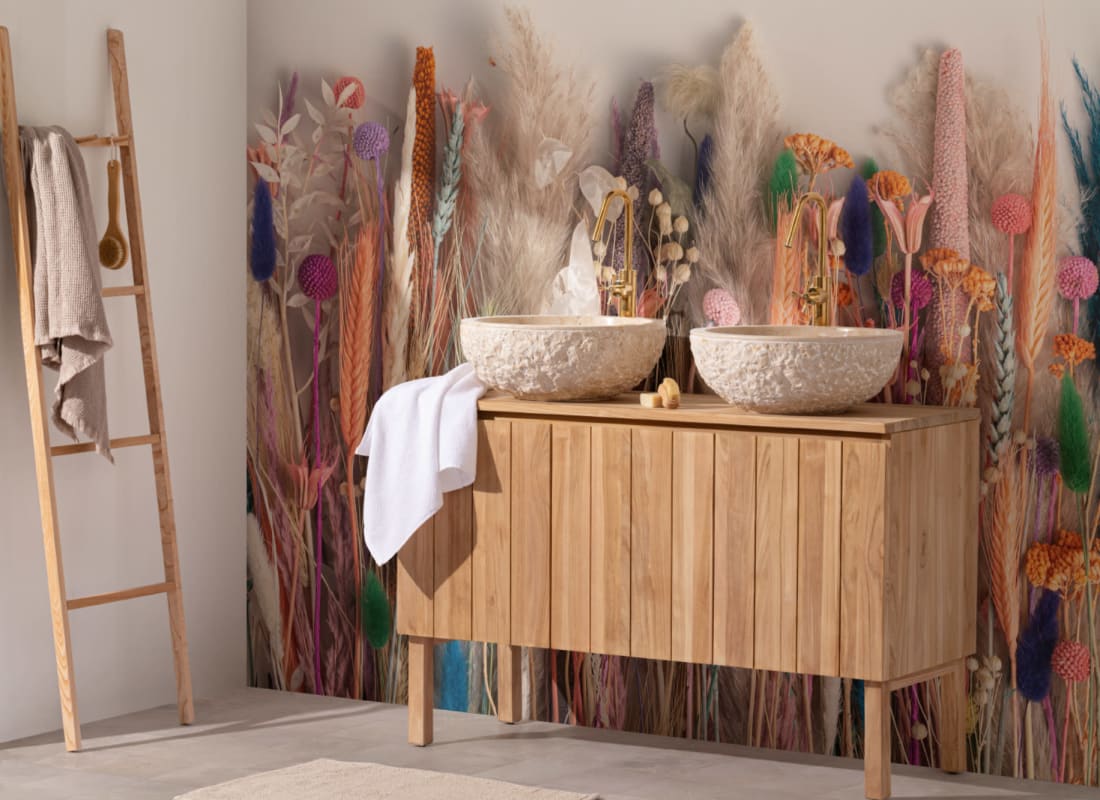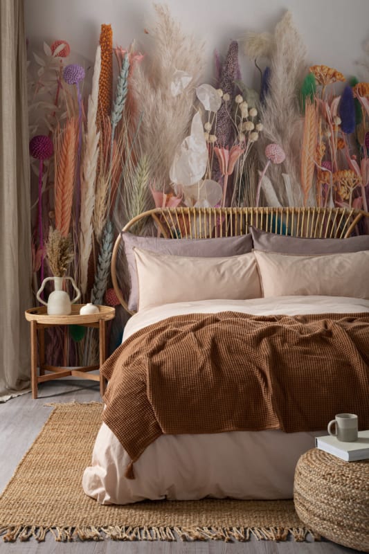 Mural Hovia Indie FL0124PA05W zachwyca bogactwem barw i naturalną estetyką, tworząc niepowtarzalny klimat w każdym wnętrzu. Model ten emanuje artystycznym duchem dzięki wyjątkowej kompozycji suszonych kwiatów i traw, ułożonych w kolorowy, pełen życia wzór. Pastelowe odcienie i intensywne akcenty kolorystyczne nadają całości wyrazistości, jednocześnie wprowadzając ciepłą, przytulną atmosferę. Mural ten doskonale komponuje się z wnętrzami w stylu boho, retro, a także w bardziej nowoczesnych aranżacjach inspirowanych naturą. Subtelne połączenie elementów botanicznych i harmonijnych tonów sprawia, że dekoracja przyciąga wzrok i staje się centralnym punktem przestrzeni. Dzięki wysokiej jakości fotografii każda roślina wydaje się niemal trójwymiarowa, dodając ścianom głębi i struktury. Mural Hovia FL0124PA05W Indie doskonale sprawdzi się zarówno w sypialni, jak i w salonie czy domowym biurze, nadając wnętrzu nieco swobodnego, artystycznego charakteru. Jego unikalny wzór wprowadza do pomieszczenia odrobinę dzikości, łącząc elegancję z naturalnym urokiem.