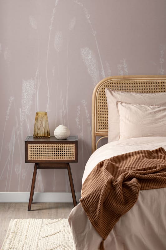 Mural Hovia Morning Meadow FL0146PI04W prezentuje wzór oparty na fotografii roślinnej, przekształconej w stylu cyjanotypii – techniki znanej z graficznego wyodrębniania detali. Kompozycja przedstawia delikatne sylwetki polnych traw i suszonych roślin, odwzorowane w jasnym odcieniu na tle o subtelnym, pudroworóżowym tonie. Efekt wizualny przypomina analogowy nadruk na szlachetnym papierze. Model Hovia FL0146PI04W Morning Meadow wyróżnia się optyczną lekkością i doskonale uzupełnia wnętrza, w których liczy się wizualny spokój i teksturalna głębia. Dobrze współgra z rattanem, jasnym drewnem i naturalnymi tkaninami, dzięki czemu wpisuje się w aranżacje rustykalne, japandi i organic modern. Mural stanowi neutralne, a zarazem bogate tło, które ułatwia komponowanie przestrzeni bez ryzyka jej przeładowania wizualnego. To rozwiązanie dekoracyjne, które łączy dyskrecję z wyrazistością.