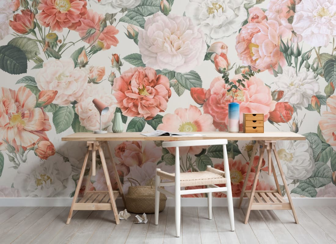 Mural Hovia Losse FL5024PI04W przedstawia rozbudowaną kompozycję róż. Model bazuje na dziełach Pierre’a-Josepha Redouté, co potwierdza jego muzealny rodowód i wysoką wartość graficzną. Kwiaty zachowują pełen realizm, a ich naturalne proporcje oraz bogactwo odcieni – od pudrowego różu, po ciepłe korale – nadają całości eleganckiego charakteru. Duża skala wzoru umożliwia wyeksponowanie faktury liści i warstw płatków, co wzmacnia wrażenie głębi. Mural Hovia FL5024PI04W Losse sprawdza się w przestrzeniach inspirowanych stylem klasycznym, vintage lub romantycznym. W połączeniu z detalami w kolorze złamanej bieli, oliwki lub terakoty stworzy efektowną ścianę akcentującą. Dekoracja wprowadzi do wnętrza świeżość botaniki oraz ponadczasową estetykę dawnych ilustracji przyrodniczych.
