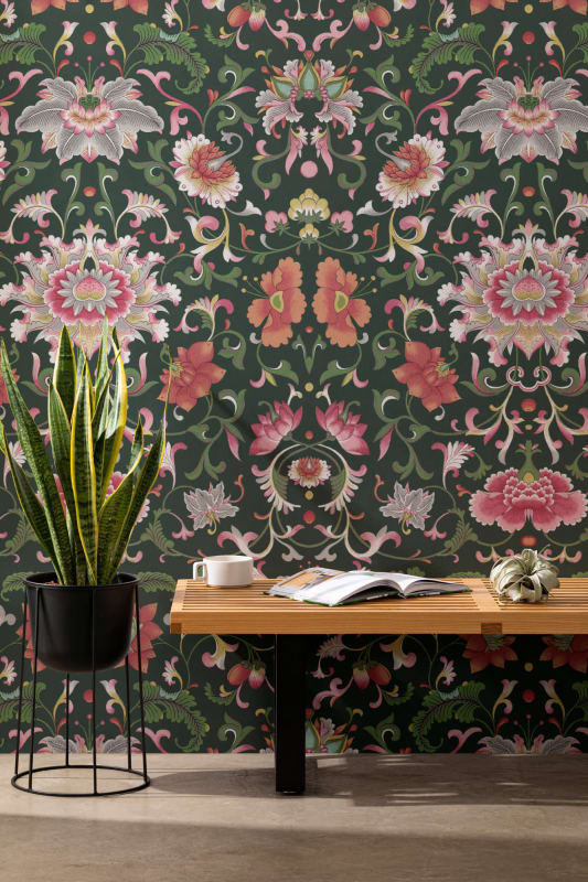 Mural Hovia Daoguang Black FL5072DA04W zachwyca bogactwem detali i intensywną kolorystyką, nawiązując do chińskich ilustracji ornamentów Owena Jonesa z 1867 roku. Głębokie, węglowe tło podkreśla ekspresję kwiatów piwonii w różowych, czerwonych i pomarańczowych odcieniach, a soczysta zieleń liści dodaje kompozycji świeżości. Wzór przyciąga uwagę swoją wyrazistością, a jednocześnie wprowadza do wnętrza orientalny klimat, pełen elegancji i dramatyzmu. Ziarnista struktura nadruku wzmacnia antyczny charakter dekoracji, nadając ścianom wyrafinowanego uroku. To doskonały wybór do pomieszczeń, w których liczy się efektowność i charakter - salonów, eleganckich gabinetów czy przestronnych jadalni, gdzie stanie się dominującym punktem aranżacji. Jego intensywne kolory i bogaty wzór idealnie komponują się z ciemnymi meblami, mosiężnymi dodatkami i naturalnymi materiałami, tworząc przestrzeń pełną wyrazu. Produkt nadaje się zarówno do wnętrz klasycznych, jak i nowoczesnych, wprowadzając odważny akcent, który podkreśla unikatowy styl. Dzięki wysokiej jakości druku i doskonałemu odwzorowaniu detali mural Hovia FL5072DA04W Daoguang Black prezentuje się niezwykle realistycznie, zapewniając trwały efekt dekoracyjny na lata.