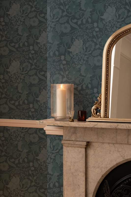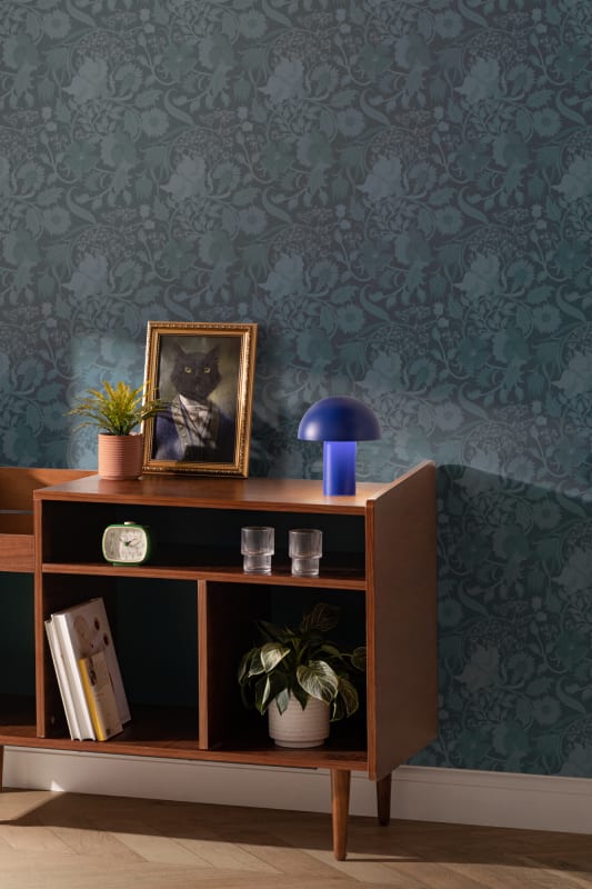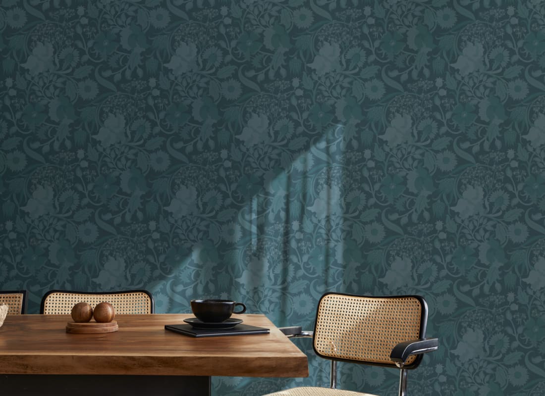 Tapeta Hovia Tansy Teal FL5326BU03R przedstawia ornamentalny wzór florystyczny inspirowany tradycyjnymi angielskimi rycinami botanicznymi. Kompozycja łączy maki, osty, dziką pietruszkę oraz główki wężownika w gęstym, maksymalistycznym układzie. Każdy detal roślinnych ilustracji tworzy dynamiczną strukturę, która doda ścianie głębi i dekoracyjnego rytmu. Głębokie turkusowe tło wzmacnia kontrast i wydobywa rysunek, a jednocześnie dodaje wnętrzu nastrojowości i szlachetności. Tapeta Hovia FL5326BU03R Tansy Teal emanuje klasyczną elegancją z nutą romantyzmu, dzięki czemu doskonale sprawdza się w stylizowanych salonach, sypialniach lub gabinetach, w których pożądany jest efekt luksusu i przytulności. Wzór wzbogaci przestrzeń i podkreśli indywidualny charakter wystroju, współgrając zarówno z antykami, jak i nowoczesnym wyposażeniem o prostych liniach.