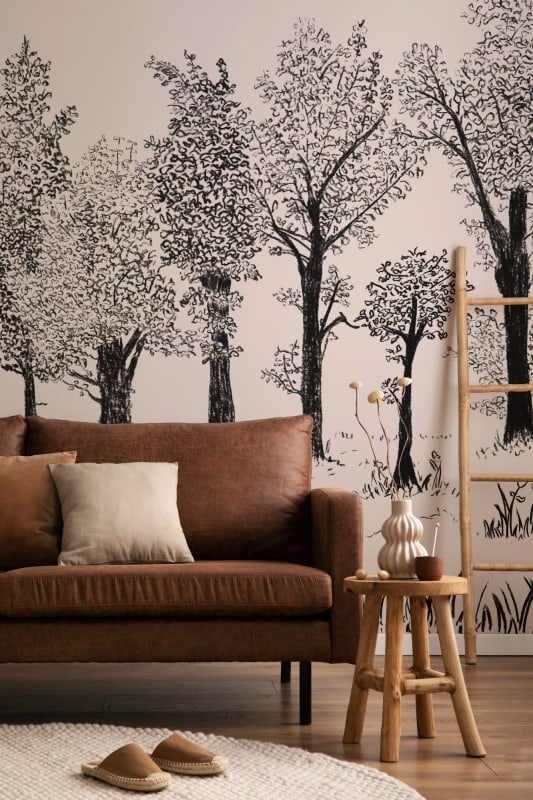 Mural Hovia Timber Black FO0334BL09W przedstawia subtelną, graficzną interpretację leśnego krajobrazu inspirowaną szkicami węglem na papierze. Kompozycja czarno-białych drzew o delikatnie zróżnicowanej fakturze tworzy spokojne tło, które zachowuje równowagę między dekoracyjnością a minimalizmem. Linie są wyraziste, ale nieprzerysowane – dzięki temu dekoracja zyskuje ponadczasowy charakter, który harmonizuje z aranżacjami w stylu modern rustic czy skandynawskim. Model Hovia FO0334BL09W Timber Black działa jak wizualne okno na naturę – wprowadza do wnętrza atmosferę sprzyjającą skupieniu. Idealny do stref pracy, korytarzy czy sypialni, gdzie priorytetem jest spokój i stonowana estetyka. W zestawieniu z jasnym drewnem i naturalnymi tkaninami mural staje się integralnym elementem wnętrza, który nie tylko dekoruje, ale definiuje jego charakter.