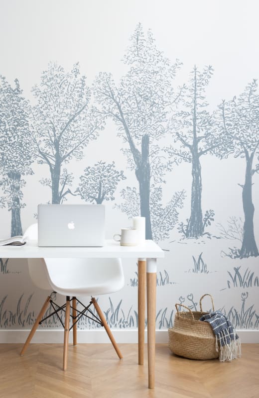 Mural Hovia Timber Blue FO0337BU09W przedstawia lekko zamglony, graficzny las, który wyróżnia się subtelnością form i chłodną, elegancką kolorystyką. Głęboki błękit ilustracji drzew kontrastuje z jasnym, pastelowym tłem, nadając całej kompozycji harmonijnego i wyciszającego charakteru. Produkt Hovia FO0337BU09W Timber Blue zachwyca dopracowaną kreską, która oddaje rytm natury w stylu minimalistycznej grafiki węglem. Dekoracja dobrze współgra z jasnymi tkaninami, drewnem oraz nowoczesnym wzornictwem, podkreślając skandynawski charakter aranżacji. Mural doskonale sprawdza się w sypialniach, jadalniach i salonach. Zachowuje estetyczną prostotę, nie tracąc przy tym na wyrazistości – staje się spokojnym, ale obecnym elementem wystroju, który wzmacnia relaksacyjny klimat pomieszczenia i optycznie je otwiera.