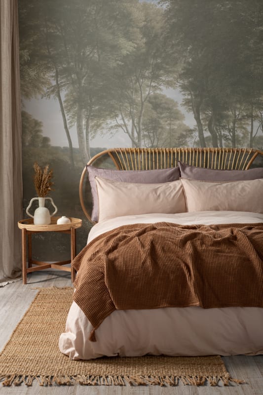 Mural Hovia Delhoved Forest Light FO0369GR04W odwzorowuje klasyczny pejzaż autorstwa P. C. Skovgaarda, reprezentanta duńskiego malarstwa romantycznego. Dekoracja oparta na olejnym oryginale ukazuje przestrzeń leśną w dziennym świetle – z wyraźnie zaznaczonymi koronami drzew, miękkimi cieniami i świetlnym kontrastem w tle. Subtelna paleta barw – zgaszone zielenie, ciepłe brązy i rozjaśnione partie nieba – sprzyja projektom z naturalną bazą materiałową. Kompozycja równoważy intensywność detali z lekkością tonalną, dzięki czemu mural optycznie poszerza wnętrze. Hovia FO0369GR04W Delhoved Forest Light wpisuje się w estetykę klasyczną, angielską i modern cottage, stając się tłem zarówno dla aranżacji jadalni, jak i przestrzeni wypoczynkowych. Dekoracja buduje atmosferę ciszy i oddechu, przenosząc użytkownika do zalesionego zakątka inspirowanego duńskim krajobrazem.