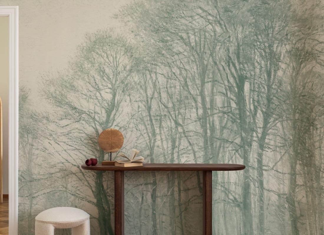 Mural Hovia Coppice Teal FO0396GR07W przedstawia ręcznie malowany pejzaż leśny, w którym sylwetki drzew tworzą rytmiczną kompozycję o wysokim stopniu przejrzystości i przestrzennej głębi. Dekoracja opiera się na detalicznie odwzorowanej strukturze gałęzi i pni, a całość utrzymana jest w chłodnej palecie zdominowanej przez odcień cyraneczki. Kolorystyka tego modelu łagodzi ostre kontrasty i nadaje wnętrzu wizualnej lekkości. Produkt zachowuje równowagę między malarską ekspresją a dekoracyjną funkcjonalnością. Hovia FO0396GR07W Coppice Teal podkreśla charakter przestrzeni wypoczynkowych, jadalni i miejsc pracy, w których istotne są harmonia, światło i klarowność wizualna. Model dobrze współgra z jasnym drewnem, strukturalnymi tkaninami i minimalistycznym wyposażeniem.