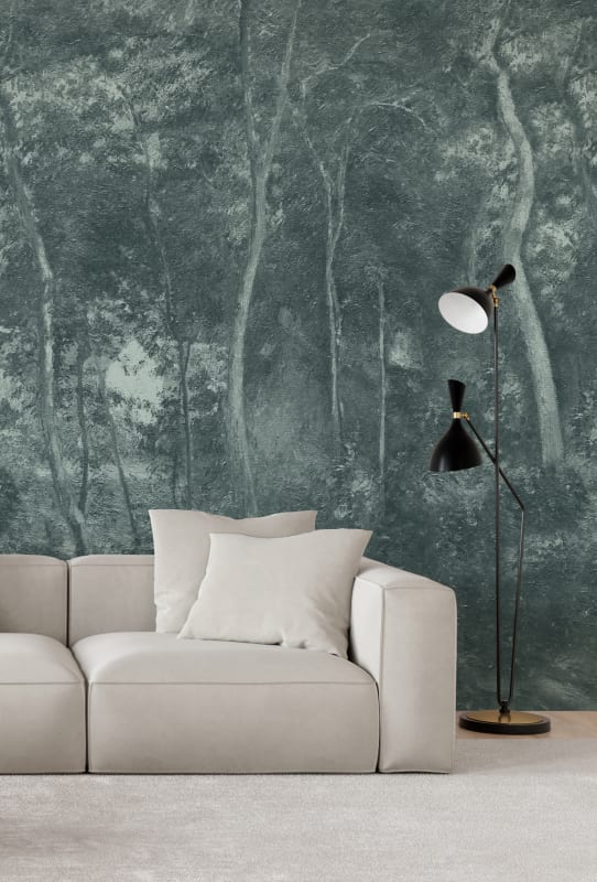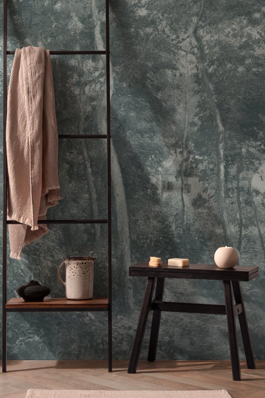 Mural Hovia Wild Wood Blue FO0518BU07W prezentuje abstrakcyjny krajobraz leśny w nowoczesnej, nasyconej odsłonie. Ciemne, grafitowozielone tło kontrastuje z subtelnym zarysem pni drzew, tworząc efekt przestrzennej głębi i teksturalnej elegancji. Kompozycja utrzymana jest w spójnej tonacji, dzięki czemu model wprowadza do wnętrza spokojny, wyrafinowany charakter. Dekoracja Hovia FO0518BU07W Wild Wood Blue świetnie współgra z aksamitnymi tkaninami, czarnymi detalami i bielą mebli, podkreślając nowoczesny styl aranżacji. Struktura inspirowana obrazem olejnym nadaje wzorowi szlachetności i dekoracyjnej wartości, nie dominując przy tym przestrzeni. Produkt znakomicie odnajduje się w minimalistycznych salonach, przestrzeniach wypoczynkowych oraz nowoczesnych gabinetach, wprowadzając nutę przytulnej tajemniczości i zmysłowej głębi.