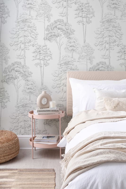 Tapeta Hovia Eva FO5006BW04R prezentuje poetycką interpretację krajobrazu leśnego, oddaną w formie precyzyjnych szkiców. Delikatna kreska podkreśla strukturę koron, rytm pni i proporcje poszczególnych gatunków drzew – od smukłych brzóz po monumentalne dęby i sosny. Kompozycja utrzymana w stonowanej tonacji grafitu na jasnym tle tworzy eleganckie tło, które uspokaja, a jednocześnie wprowadza do wnętrza szlachetny pierwiastek natury. Tapeta Hovia FO5006BW04R Eva idealnie wpisuje się w estetykę minimalistyczną, skandynawską i japandi – sprzyja kontemplacji, wyciszeniu i harmonii. Wzór sprawdza się zarówno w aranżacjach sypialni, jak i salonów, pokoi dziecięcych czy gabinetów, nadając przestrzeniom uniwersalnego, ale zarazem wyrafinowanego charakteru. Teksturalna głębia szkicu dodaje ścianom subtelnej dynamiki, nie konkurując z pozostałymi elementami wyposażenia.