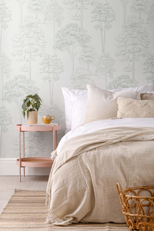 Tapeta Hovia Eva Green FO5007GR04R przedstawia stylizowaną panoramę lasu ujętą w graficznej formie szkicu. Subtelnie odwzorowane drzewa – od filigranowych brzóz po majestatyczne dęby i sosny – tworzą pionową, rytmiczną kompozycję, która wydłuża optycznie przestrzeń i wprowadza do niej organiczny porządek. Każdy element wzoru ukazuje kunszt rysunku ołówkiem, z wyczuwalną fakturą i bogactwem drobnych niuansów. Stonowana paleta szałwiowej zieleni w duecie z kremowym tłem tworzy kojący, naturalny klimat, doskonale korespondujący z drewnem, lnem i miękkimi tkaninami. Tapeta Hovia FO5007GR04R Eva Green harmonizuje z aranżacjami w stylu biophilic, modern cottage i japandi, wnosząc do wnętrz balans oraz szlachetność inspirowaną przyrodą. Idealna do przestrzeni wypoczynkowych, pokoi dziecięcych i kuchni, gdzie równowaga i estetyka mają kluczowe znaczenie.