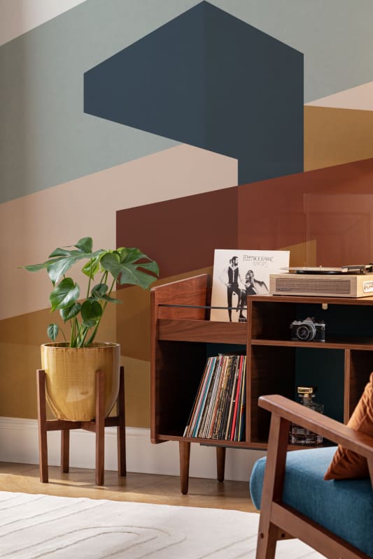 Mural Hovia GE0153MU04W Mallord przedstawia przestrzenną grę form inspirowaną geometrią modernistyczną oraz brutalistycznym podejściem do kompozycji. Grafika zachwyca precyzyjnym układem bloków i złamanych linii, które tworzą iluzję głębi i architektonicznej perspektywy. Harmonijna paleta barw opiera się na ciepłych tonach ochry, cegły, karmelu i bursztynu, przełamanych chłodnym granatem – zestawienie to daje intensywny, a zarazem wyważony efekt. Dekoracja z łatwością odnajduje się we wnętrzach w stylu mid century modern, modernistycznym oraz industrialnym. Doskonale komponuje się z prostymi formami mebli, surowym drewnem, elementami z metalu i designerskimi akcentami. Produkt Hovia GE0153MU04W Mallord jest idealnym wyborem do gabinetów, holi i nowoczesnych salonów, w których geometria i kolor stanowią spójną oś narracyjną aranżacji.