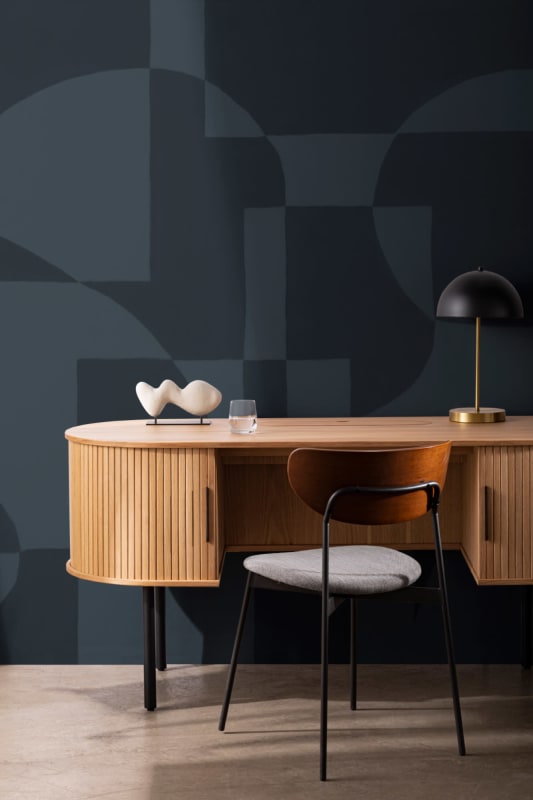 Mural Hovia Hulanicki Navy GE0173DA04W przyciąga wzrok głębokim zestawieniem granatu z matowym grafitem, układającym się w dynamiczną kompozycję abstrakcyjnych kształtów. Ręcznie malowane formy inspirowane modernizmem i stylem Bauhausu zyskują nowe znaczenie w ciemnej, nasyconej palecie, wprowadzając do wnętrza strukturę i graficzną dyscyplinę. Model Hovia GE0173DA04W Hulanicki Navy doskonale współgra z minimalistycznym drewnem, szczotkowanym metalem, detalami z czarnego szkła. Głębia kolorów buduje tło o mocnym charakterze, które nie przytłacza, lecz nadaje przestrzeni wyrazistości. Jest odpowiedni zarówno do strefy dziennej, jak i biura lub domowej biblioteki, do których wprowadzi atmosferę spokoju, równowagi i współczesnej elegancji.