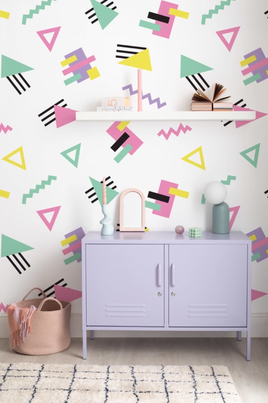 Mural Hovia Comeback GE5029MU30W emanuje radosnym klimatem lat 90., łącząc geometrię z pastelową kolorystyką. Wyraziste kształty – trójkąty, linie i prostokąty w odcieniach różu, mięty, żółci i fioletu – tworzą kompozycję pełną dynamiki. Na jasnym tle kontrastują grube, czarne linie, dodając wyrazistości i podkreślając styl retro. Dekoracja świetnie sprawdza się w dziecięcych pokojach, do których wnosi lekkość i pozytywną energię. W biurze dodaje kreatywnego akcentu, natomiast w kuchni ożywia przestrzeń. Geometryczny motyw nadaje wnętrzu wyjątkowego charakteru, łącząc nostalgię z nowoczesnym designem. Model Hovia GE5029MU30W Comeback to doskonały wybór dla osób ceniących niebanalne dekoracje ścienne. Ożywia pomieszczenie i nadaje mu unikalnego stylu, wpisując się w aranżacje pełne koloru i pozytywnego nastroju. Dzięki lekkiej, pastelowej palecie mural wprowadza świeżość i optymizm, tworząc efektowne tło dla kolorowych dodatków i nowoczesnych mebli.