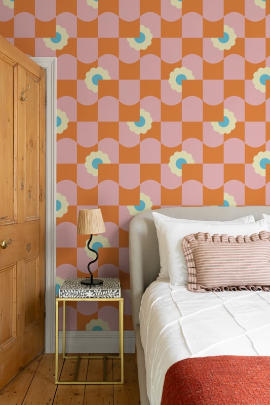 Hovia GE5709PI11R Petal Pop Peach - tapeta w kwiaty i geometryczny wzór retro