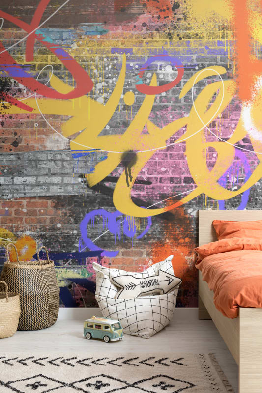 Mural Hovia Heights GR0037MU05W prezentuje intensywną kompozycję graffiti na tle klasycznej cegły, oferując wnętrzom silny, miejski akcent. Warstwowa grafika wypełniona odważnymi pociągnięciami sprayu i dynamicznymi kształtami przyciąga wzrok energią i bezkompromisową estetyką. Kontrastowe kolory – cytrynowy żółty, fuksja, kobalt i czerń – wprowadzają do przestrzeni element zaskoczenia i wizualnej głębi. Mural Hovia GR0037MU05W Heights świetnie odnajduje się w aranżacjach z nutą industrialną, artystyczną lub inspirowaną kulturą uliczną. Idealnie współgra z prostymi meblami, czarnymi detalami i betonowymi powierzchniami. Sprawdzi się jako dominujący punkt w pokoju młodzieżowym, przestrzeni kreatywnej, klatce schodowej czy kuchni z nowoczesnym charakterem. Autentyczna faktura cegły pod warstwą kolorów dodaje wzorowi realizmu i głębi.