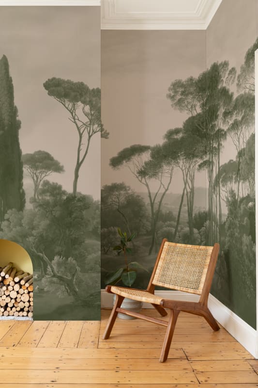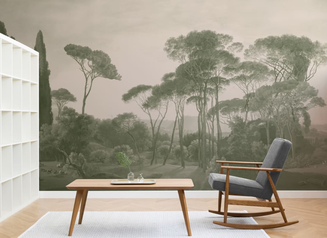 Mural Hovia Tivoli Green LA0378GR03W emanuje spokojem klasycznego malarstwa krajobrazowego, ukazując majestatyczne drzewa, łagodne pagórki i fragmenty antycznych ruin w tonacji przygaszonej zieleni. Nasycone odcienie szałwii, oliwki i omszałej zieleni tworzą naturalistyczną, niemal eteryczną atmosferę, przywodząc na myśl nostalgiczne pejzaże włoskiego wybrzeża. Kompozycja została opracowana z malarską precyzją – miękkie światło rozprasza się na tle cieni i mglistych konturów roślinności, co nadaje dekoracji głębi i przestrzenności. Mural Hovia LA0378GR03W Tivoli Green znakomicie odnajdzie się w eleganckich wnętrzach, w których liczy się cisza, harmonia i ponadczasowa estetyka. Doskonale koresponduje z naturalnymi materiałami, takimi jak drewno czy len, a jego stonowany charakter buduje tło sprzyjające relaksowi i kontemplacji.