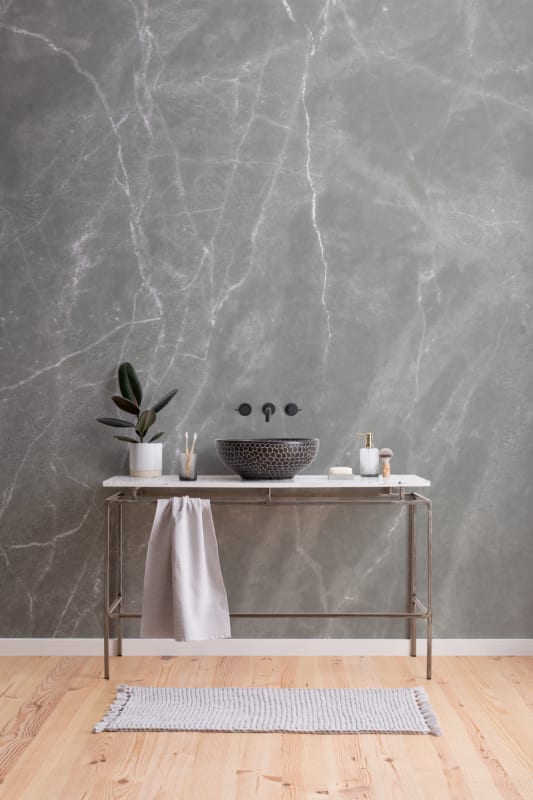 Mural Hovia Sage MA0009GR02W zachwyca elegancją inspirowaną naturalnym rysunkiem marmuru. Dekoracja odtwarza strukturę kamienia z wyraźnym żyłkowaniem, co nadaje powierzchni głębi i szlachetnego charakteru. Subtelne przebarwienia i tonalne zróżnicowanie barw budują efekt realistycznej faktury bez konieczności zastosowania ciężkich materiałów. Model Hovia MA0009GR02W Sage doskonale koresponduje z wnętrzami w stylu nowoczesnym, organic modern i art deco – sprawdzi się wszędzie tam, gdzie liczy się wyważony luksus oraz świadome operowanie fakturą i kolorem. Do każdego pomieszczenia wprowadzi ponadczasowy akcent. Pięknie prezentować będzie się w gabinecie, salonie lub garderobie. Mural równoważy funkcjonalność z estetyką – jego obecność podkreśla charakter wnętrza i nadaje mu wrażenia harmonii, czystości formy i naturalnej elegancji.