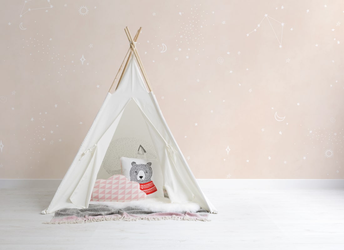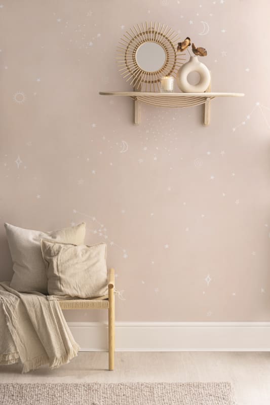 Mural Hovia Celestial Pink SG0508PI03W prezentuje wzór inspirowany astrologią, który łączy graficzne symbole konstelacji, księżyców i gwiazd z łagodnym, brzoskwiniowo-różowym tłem. Pastelowa baza z efektem rozmytej akwareli została wzbogacona o subtelną fakturę, dzięki czemu powierzchnia zyskuje głębię i miękki, wizualnie przyjemny efekt. Dekoracja Hovia SG0508PI03W Celestial Pink emanuje spokojem, dlatego sprawdza się w aranżacjach stref odpoczynku – od pokoju dziecięcego, po domową sypialnię. Kompozycja została zaprojektowana z myślą o równowadze między estetyką a funkcjonalnością, nie przytłacza wnętrza, lecz nadaje mu charakteru i subtelnej narracji. Mural idealnie współgra z jasnymi meblami, naturalnym drewnem i miękkimi tkaninami, tworząc spójną i harmonijną przestrzeń.