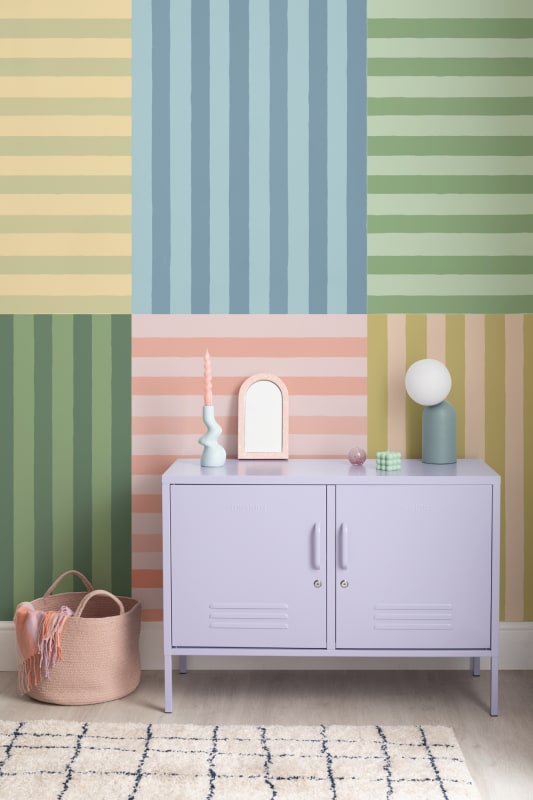Mural Hovia Patchwork ST0545MU07W prezentuje układ ręcznie malowanych, pionowych pasów w formie graficznej mozaiki, której akwarelowa struktura nadaje całości dynamicznego i nowoczesnego charakteru. Zróżnicowana paleta pastelowych kolorów – od łagodnych żółci, po zielenie i róże – kontrastuje ze sobą, ale pozostaje wizualnie spójna dzięki zharmonizowanej kompozycji. Model sprawdza się w przestrzeniach zaprojektowanych w stylu scandi-boho i nowoczesnym, oferując dekoracyjny akcent do pokoju dziecięcego lub sali zabaw. Dekoracja Hovia ST0545MU07W Patchwork pozwoli zbudować pełne życia, kolorowe tło sprzyjające kreatywności, a jednocześnie nieprzeciążające przestrzeni wizualnie. Dzięki ręcznie malowanej estetyce mural zyskuje miękkość i naturalność, która pozytywnie wpływa na atmosferę wnętrza, tworząc przyjazne środowisko dla dzieci.